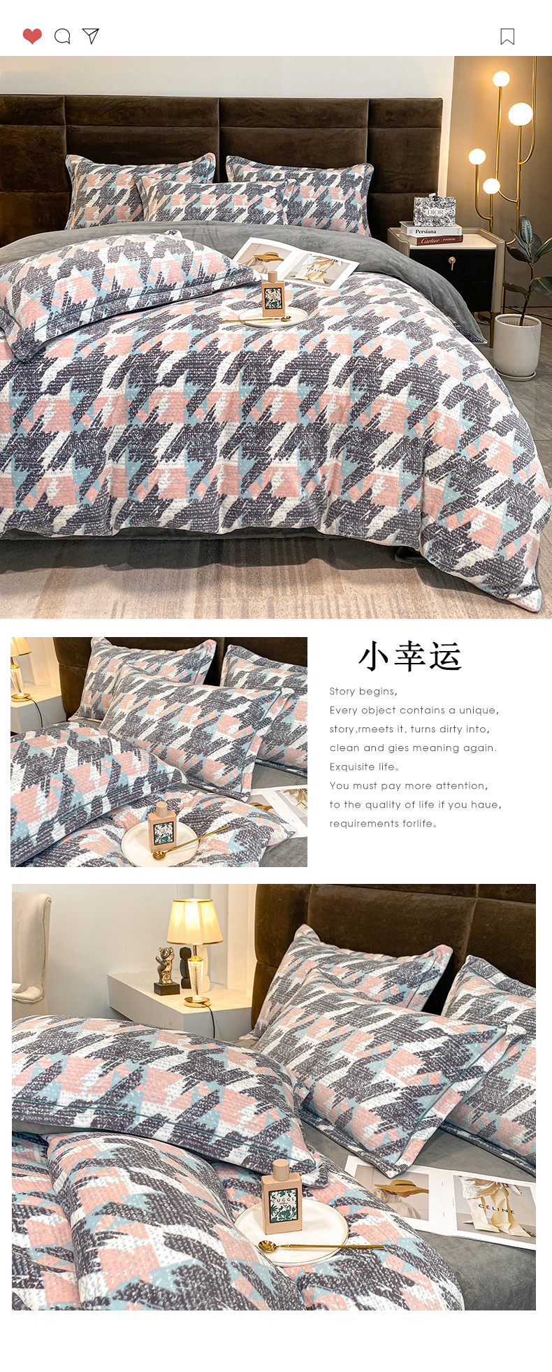 当前位置: 91家纺网 > 商品网购 > 床品套件 > 四件套 > 牛奶绒四件套 > 花漾 2024新款欧式轻奢压线牛奶绒四件套 小幸运