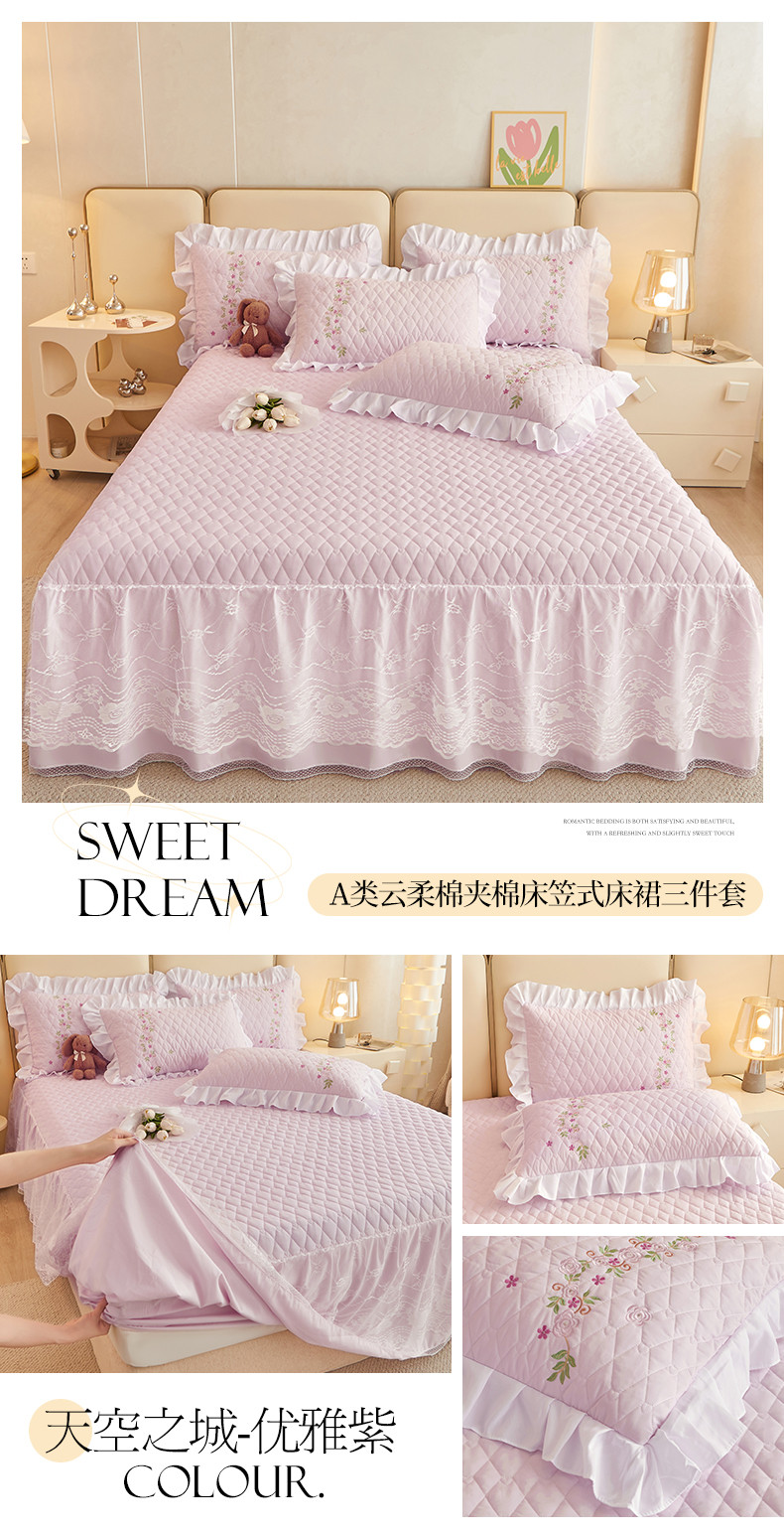 当前位置: 91家纺网 > 商品网购 > 床品套件 > 三件套 > 宜凡 2023新A类云柔棉床笠式床裙三件套 天空之城-优雅紫
