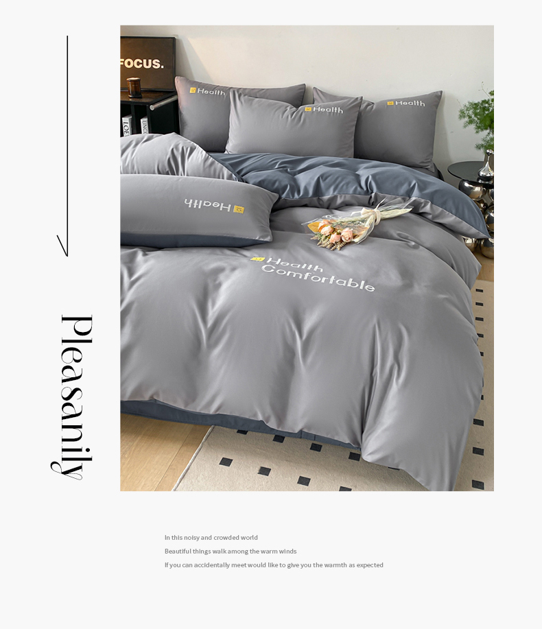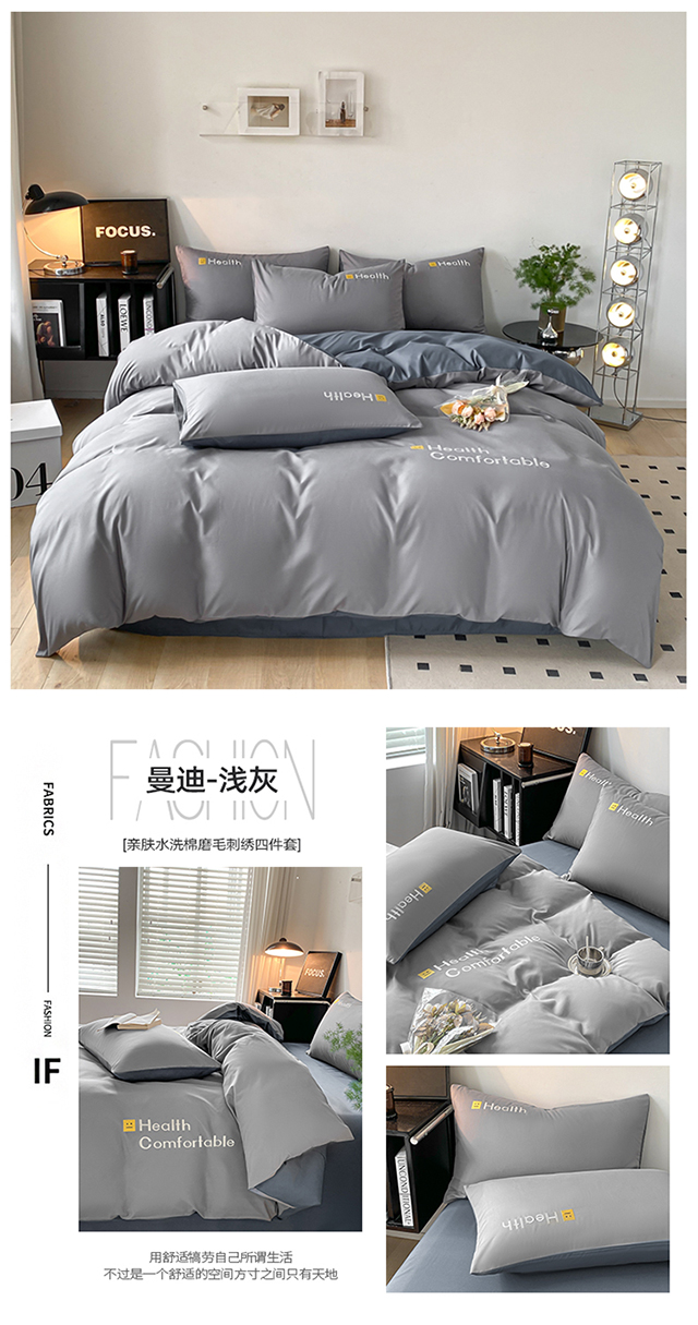 欣晴家纺 2023新款加厚磨毛水洗棉刺绣三件套四件套-曼迪系列 曼迪-浅灰