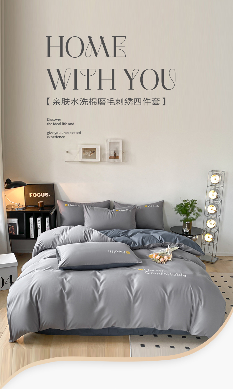 (总)欣晴家纺 2025新款亲肤水洗棉磨毛刺绣四件套-挚爱系列,粉玉+浅灰,焦糖+米驼,米白,米白+浅灰,米黄+粉玉,米黄+焦糖,米驼,米驼+深灰,浅灰+米驼,深灰+浅灰