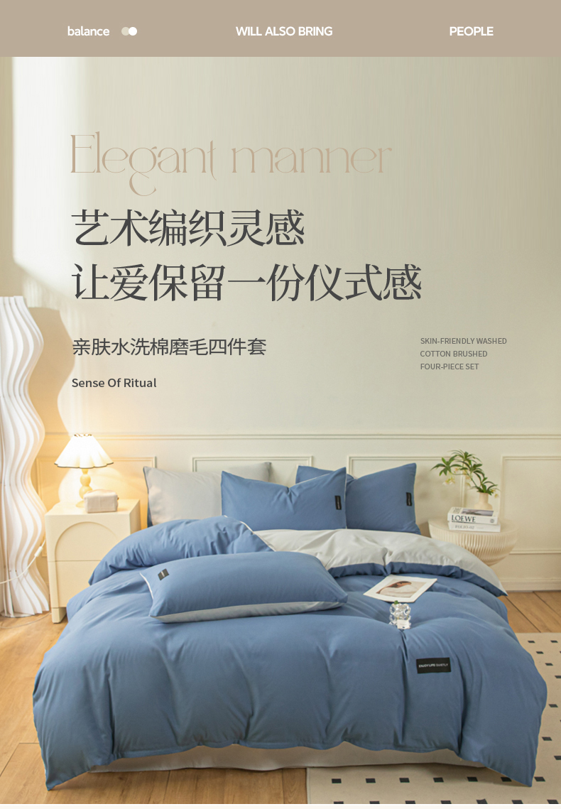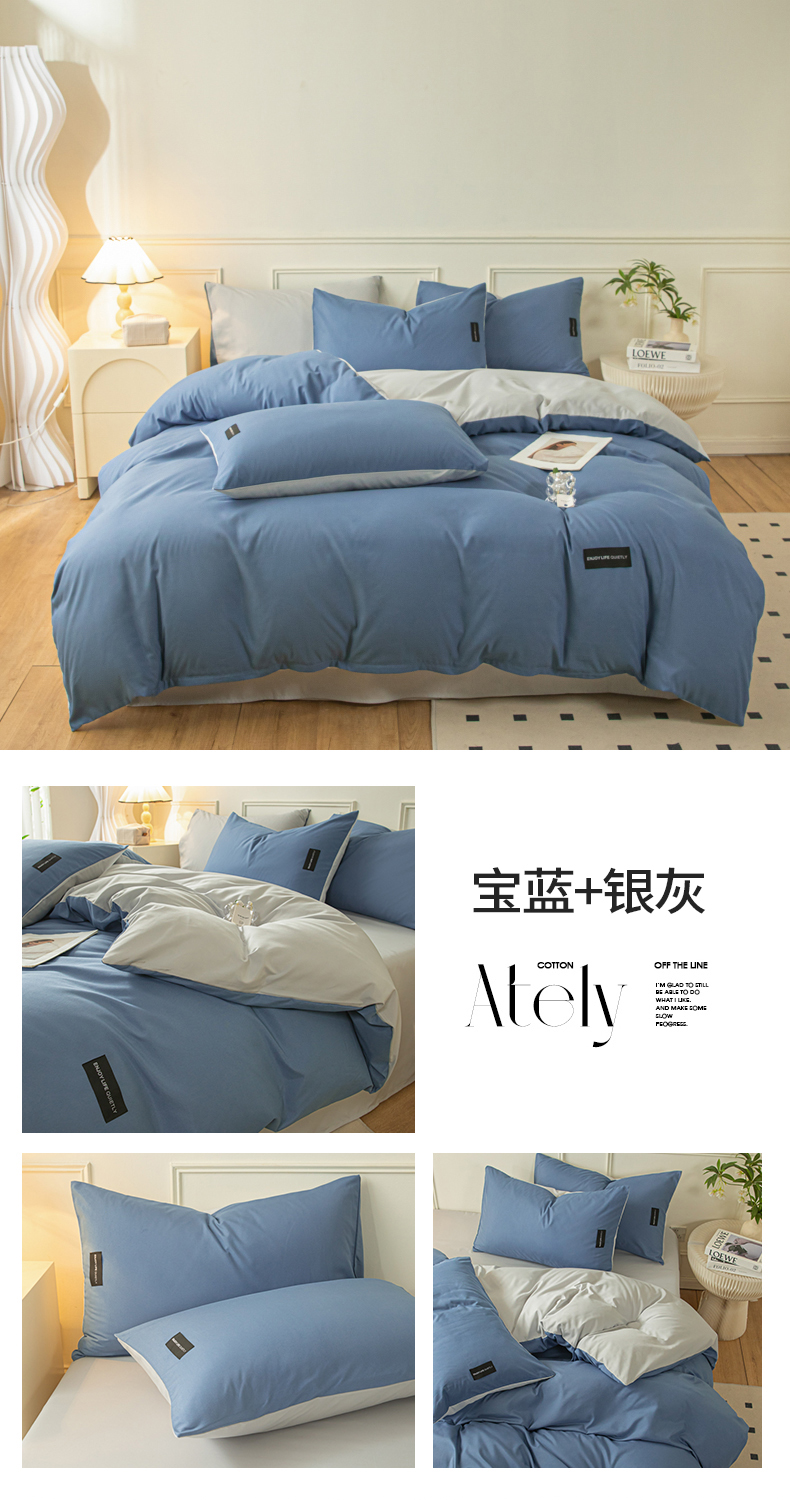 当前位置: 91家纺网 > 商品网购 > 床品套件 > 四件套 > 水洗棉四件套 > 欣晴家纺 2023新品亲肤水洗棉磨毛织标系列三件套四件套 宝蓝+银灰