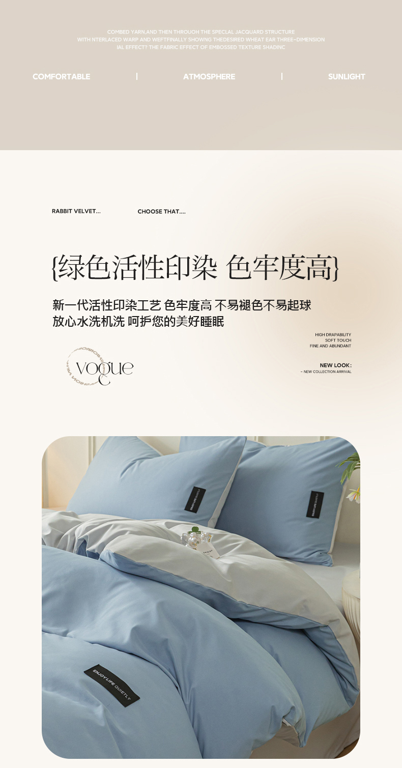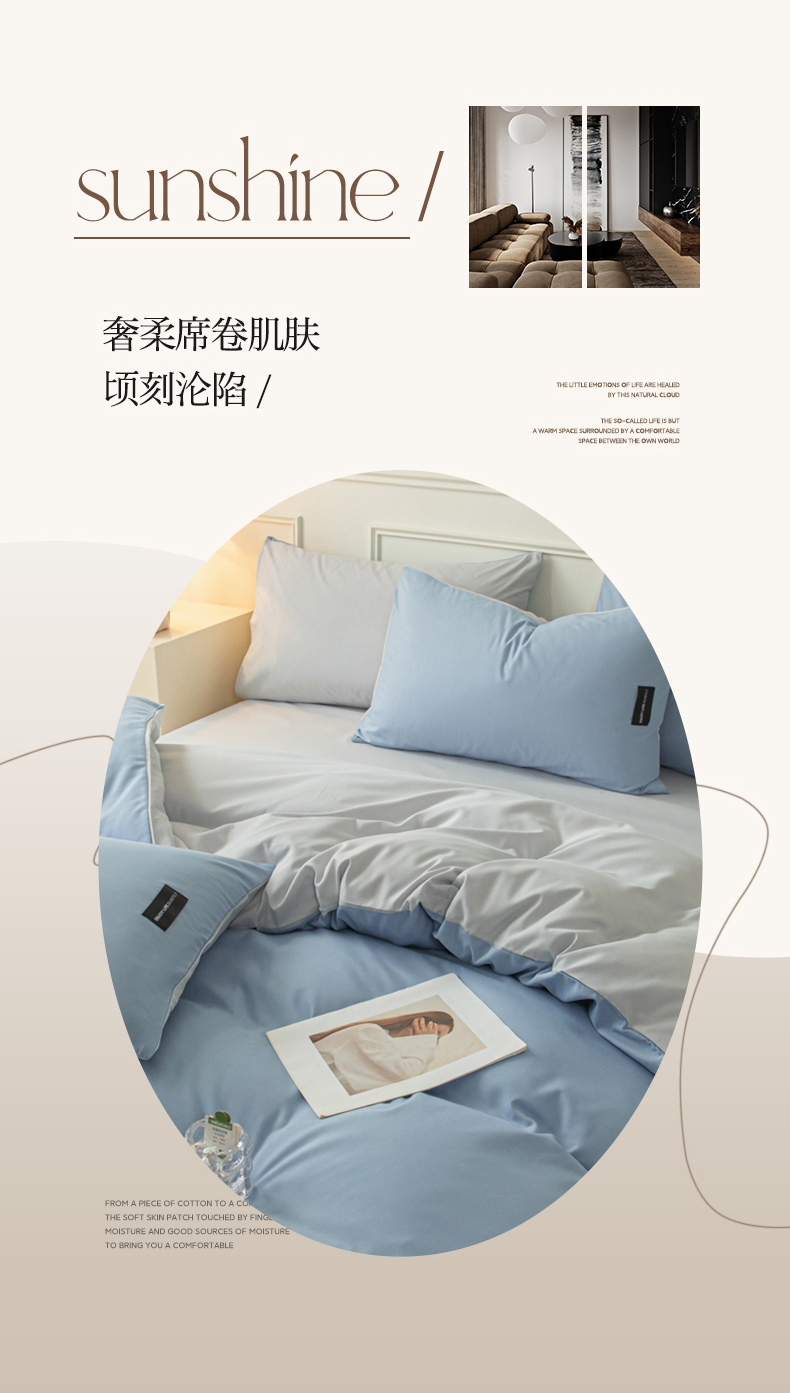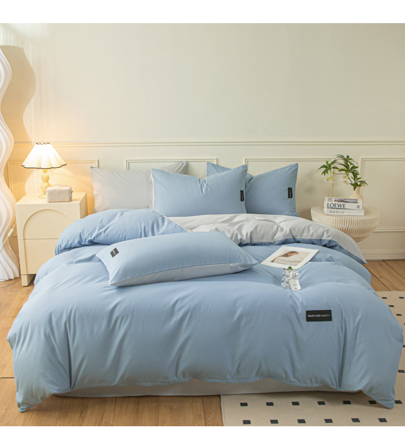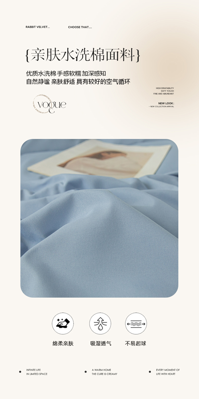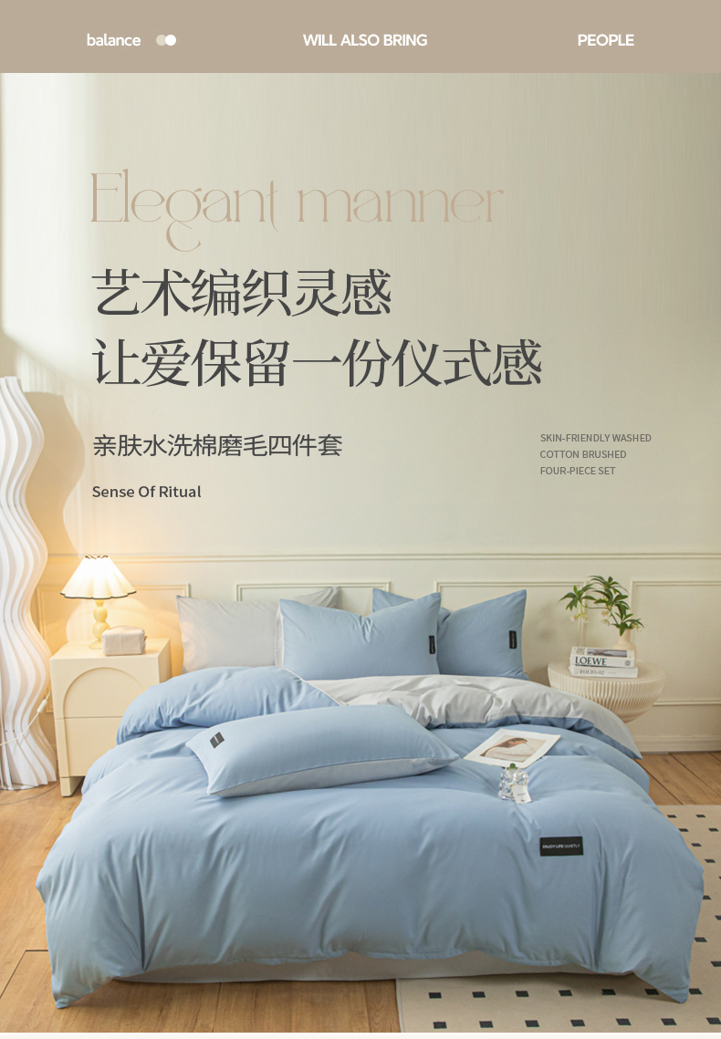 当前位置: 91家纺网 > 商品网购 > 床品套件 > 四件套 > 水洗棉四件套 > 欣晴家纺 2023新品亲肤水洗棉磨毛织标系列三件套四件套 浅蓝+银灰