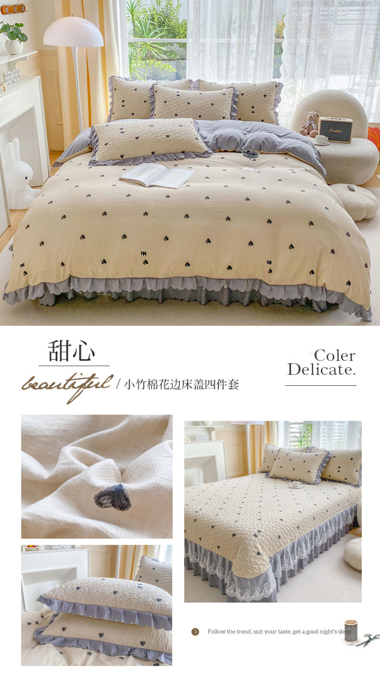 商品名称:艺慕 2025款双层蕾丝大花边床盖 甜心