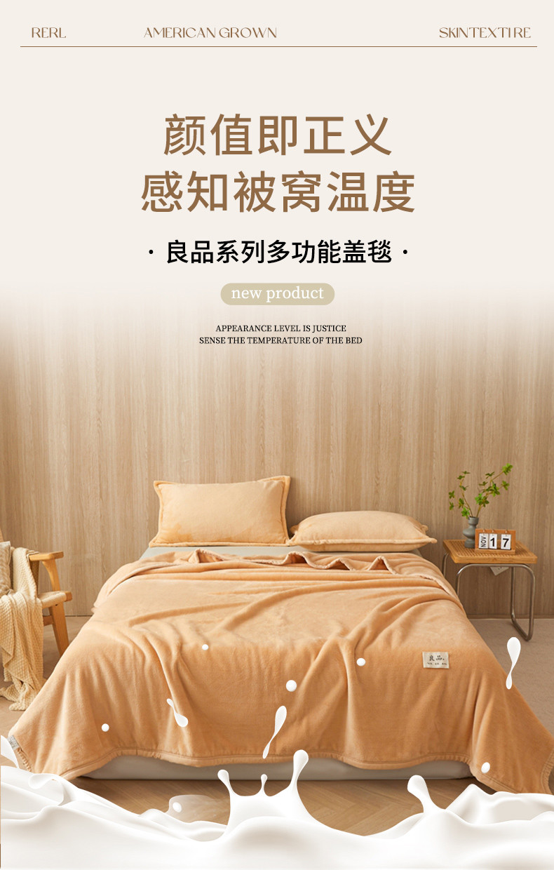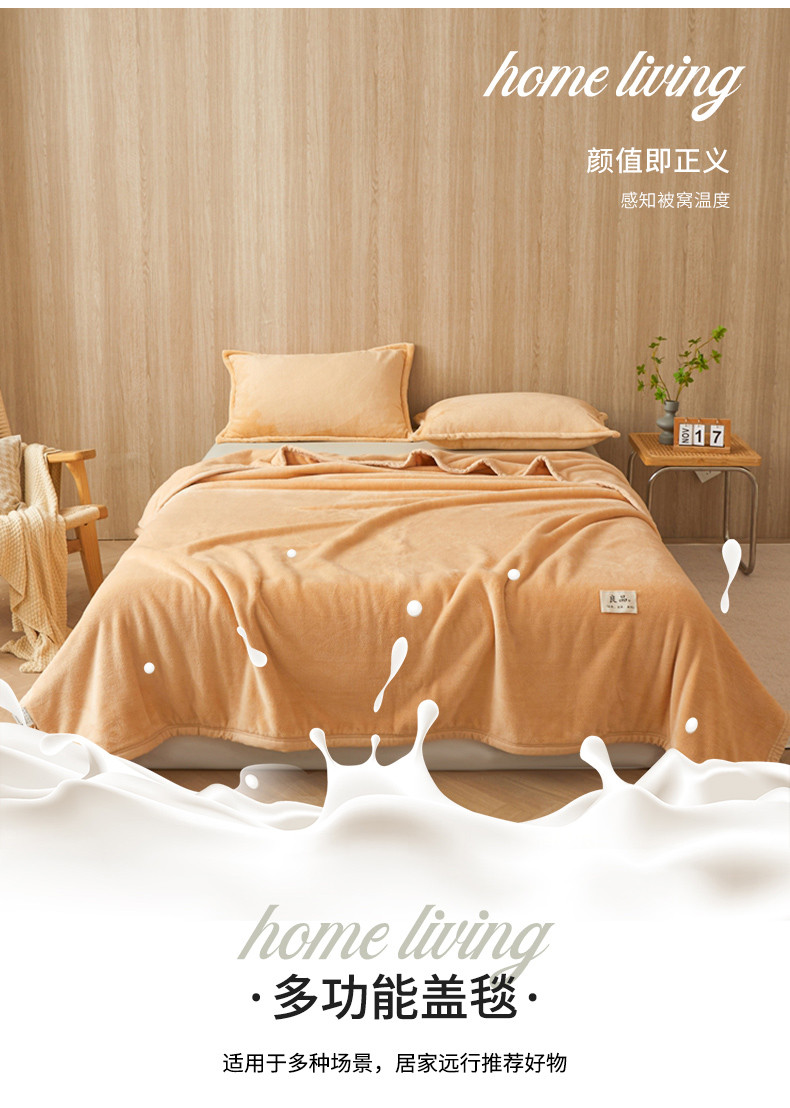 当前位置: 91家纺网 > 商品网购 > 毛毯休闲毯绒毯 > 毛毯 > 雅萱家纺 2024新款良品系列牛奶绒多功能毛毯盖毯 良品-驼色