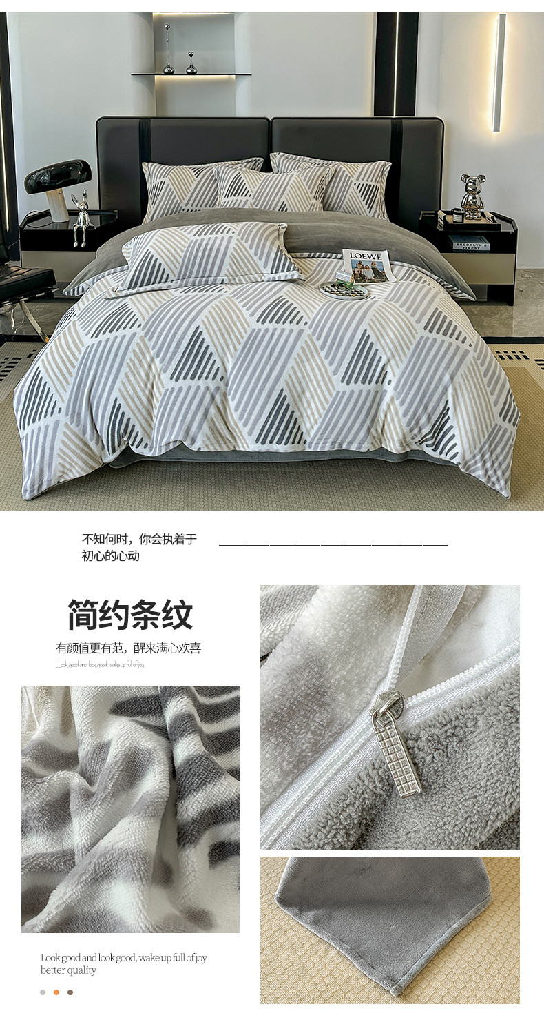 商品名称:耀达 2024新款轻奢加厚牛奶绒四件套 简约条纹