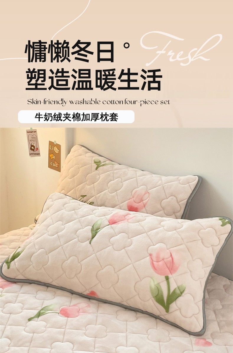 商品名称:梦舒羽 2025新款冬季牛奶绒夹棉加厚加绒亲肤柔软枕芯套 郁金香