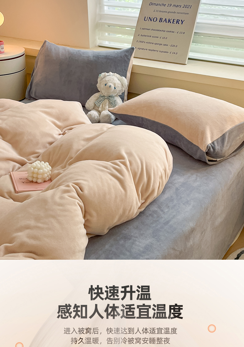 当前位置: 91家纺网 > 商品网购 > 床品套件 > 四件套 > 牛奶绒四件套 > 三朵家纺 2023新款牛奶绒混搭系列四件套 米驼+浅灰