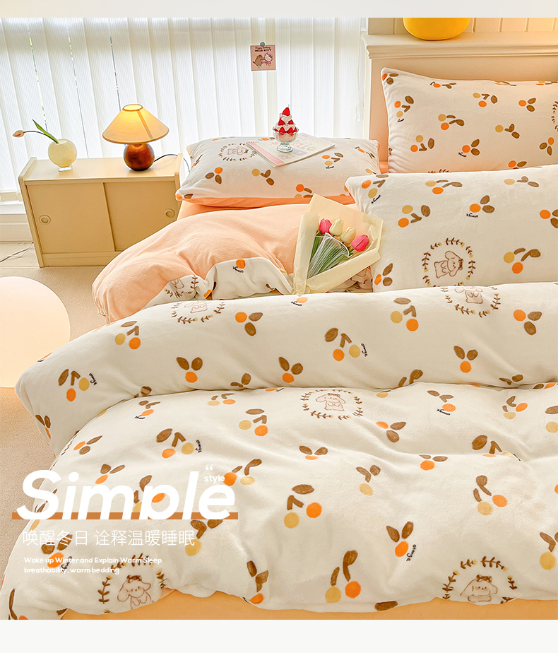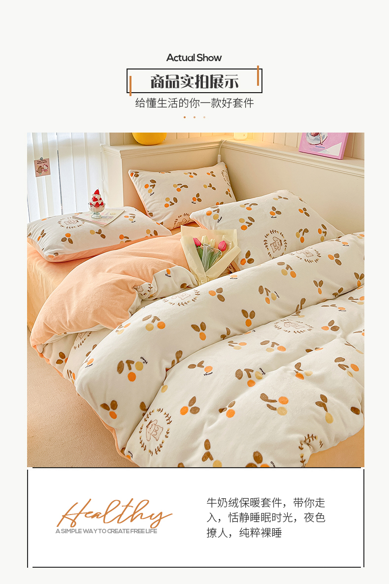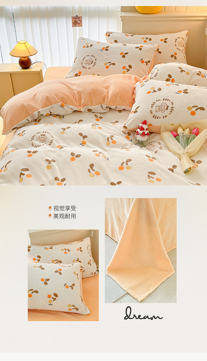 商品名称:金爱家 2023新款ins小清新韩系卡通少女心奶油兔子加厚牛奶绒系列四件套 绒-果果兔