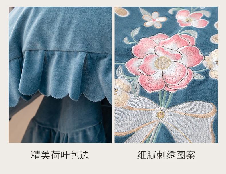 商品名称:优姿家纺 2024新品8.5斤德芙绒韩版床裙绣花保暖四件套 今生有约宝石兰