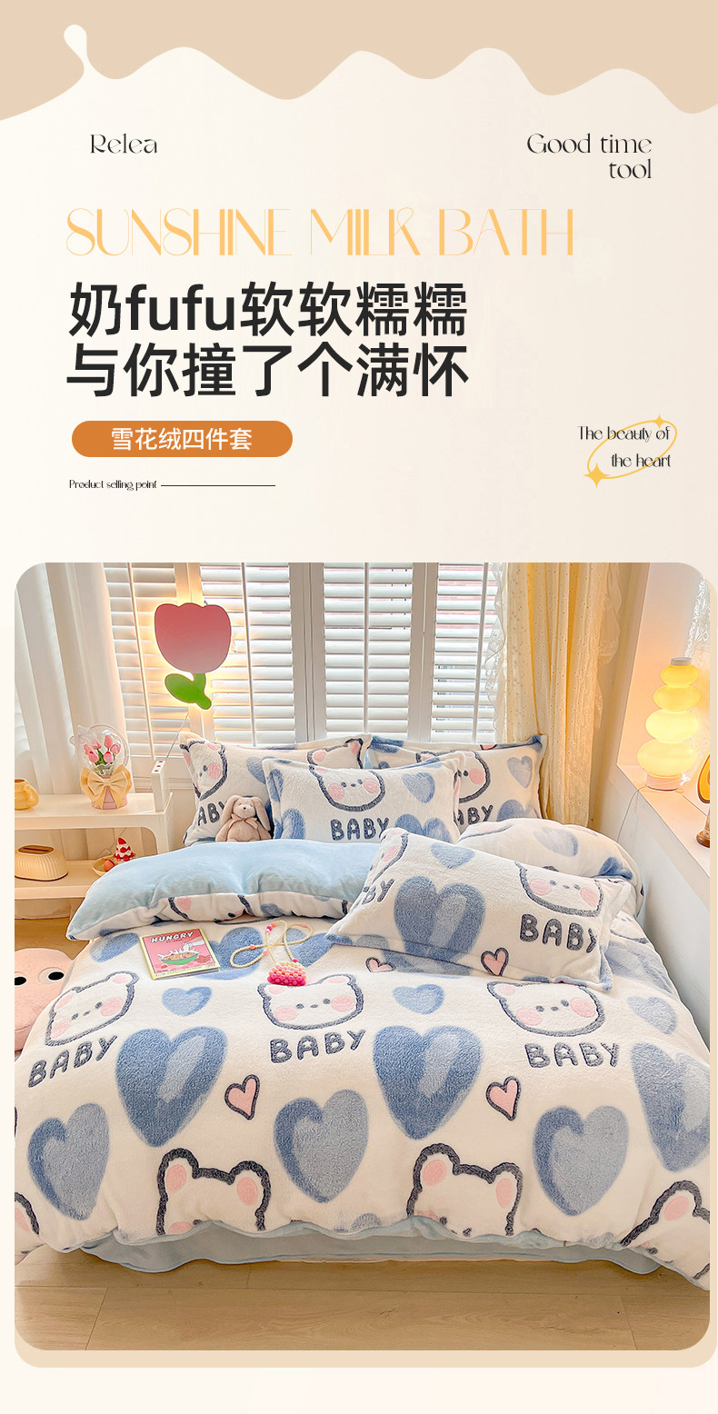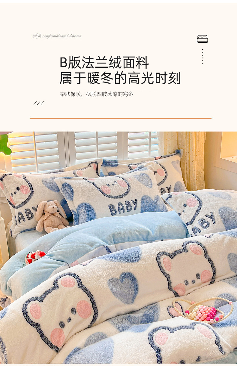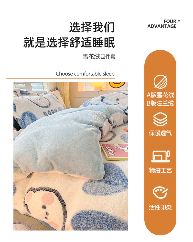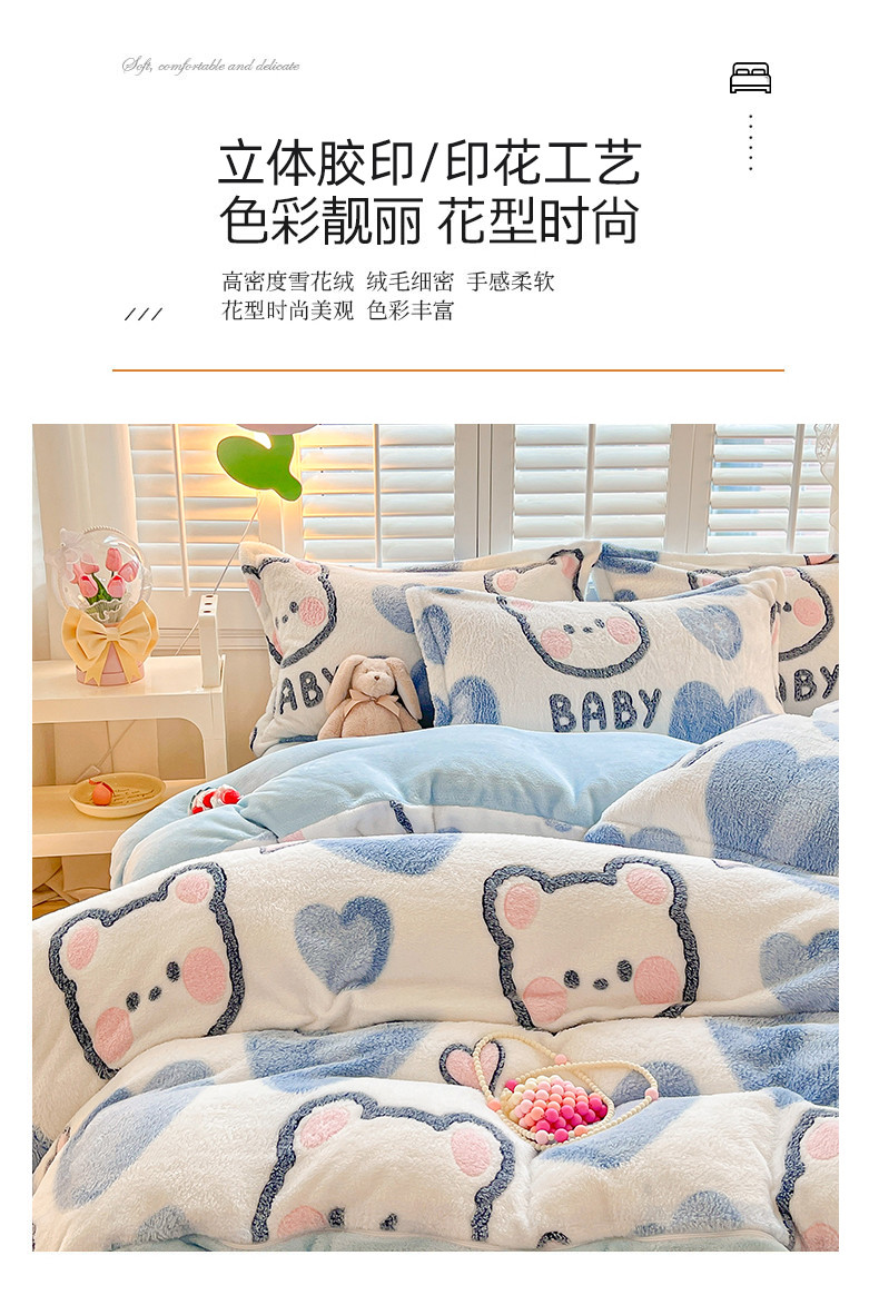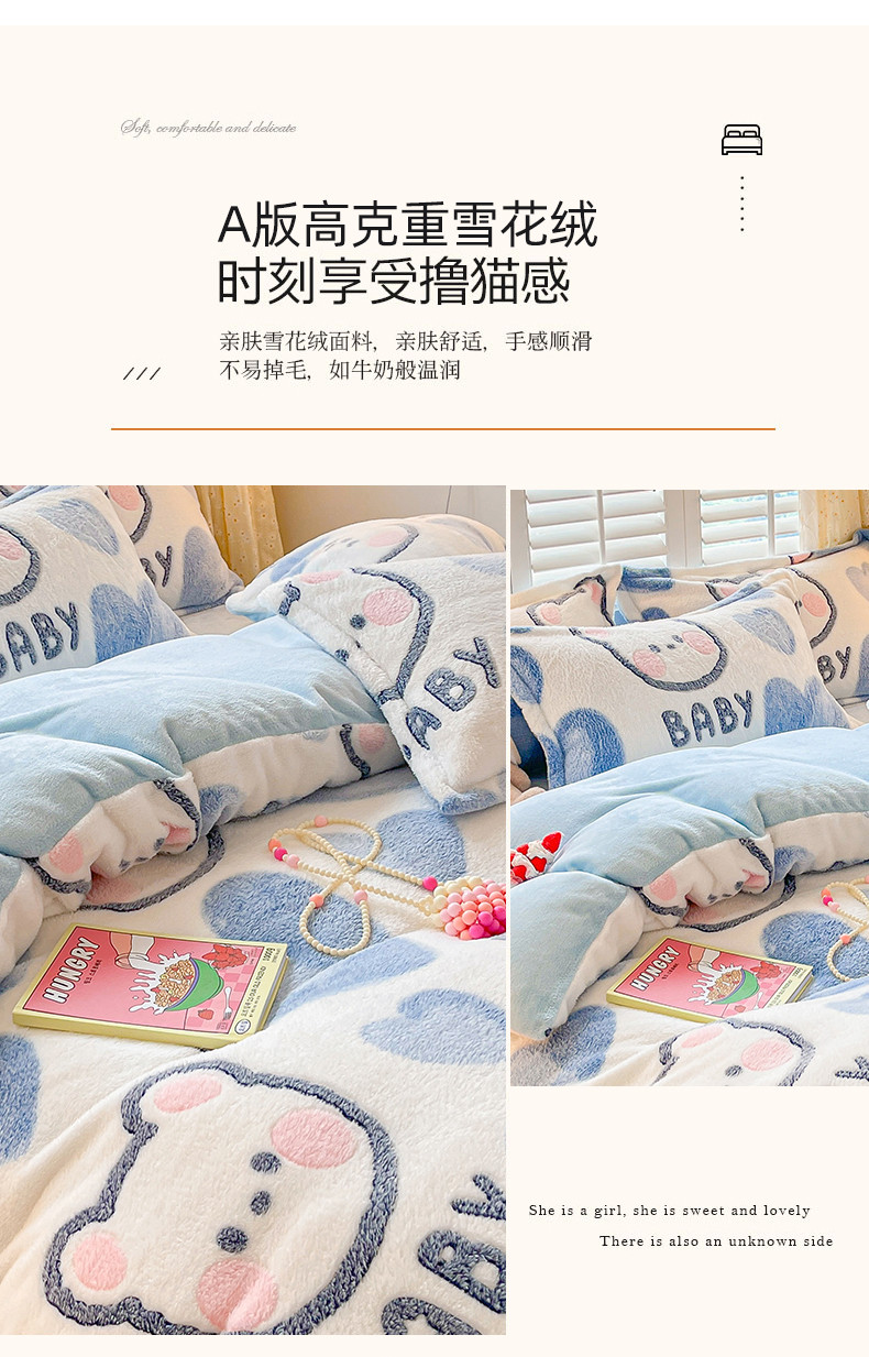 当前位置: 91家纺网 > 商品网购 > 床品套件 > 四件套 > 磨绒四件套 > 川悦生活 2023新款立体雪花绒四件套 可爱熊