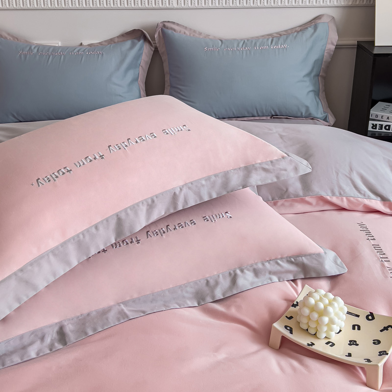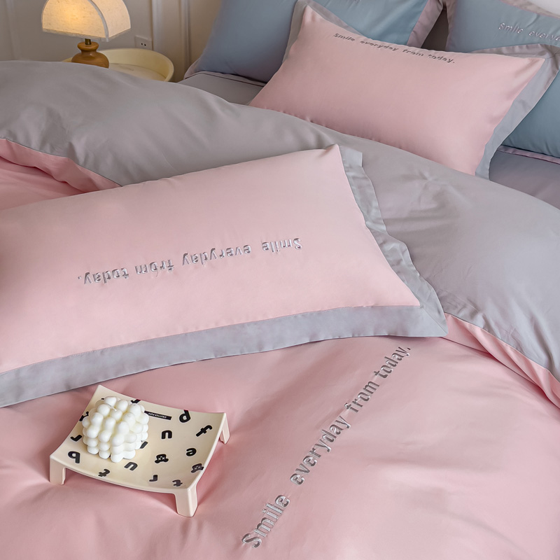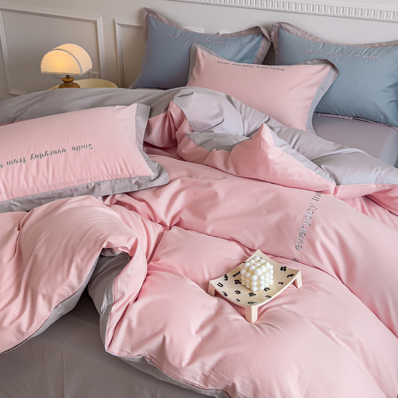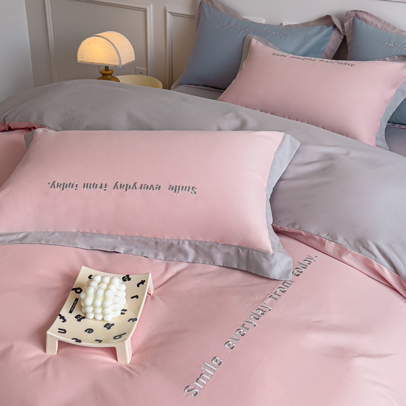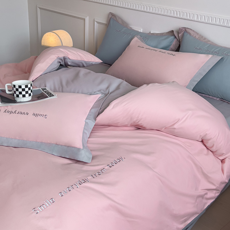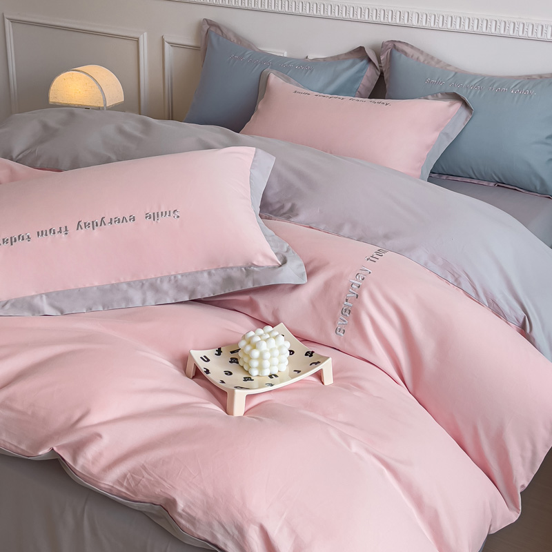 (总)嘉汀兰 2023新款60支全棉磨毛绣花撞色轻奢四件套—暮里,粉色,红灰色,芥绿色,浅灰色,深青色