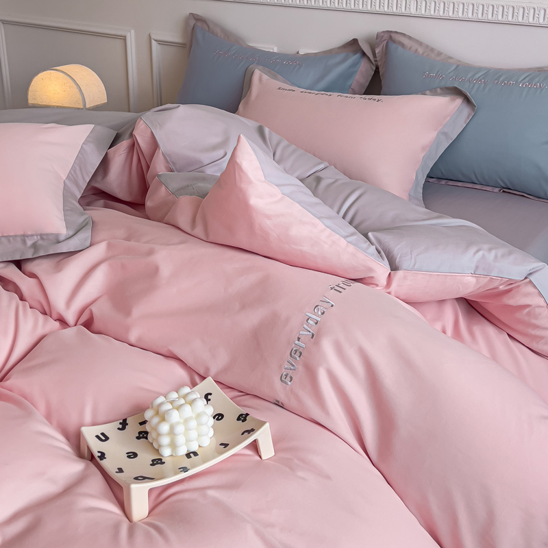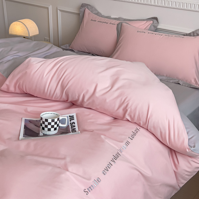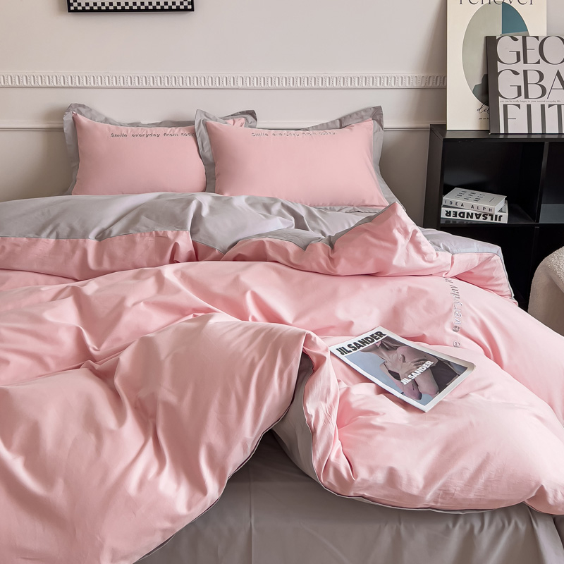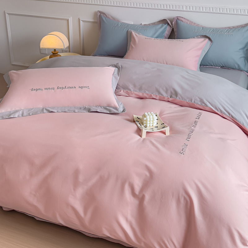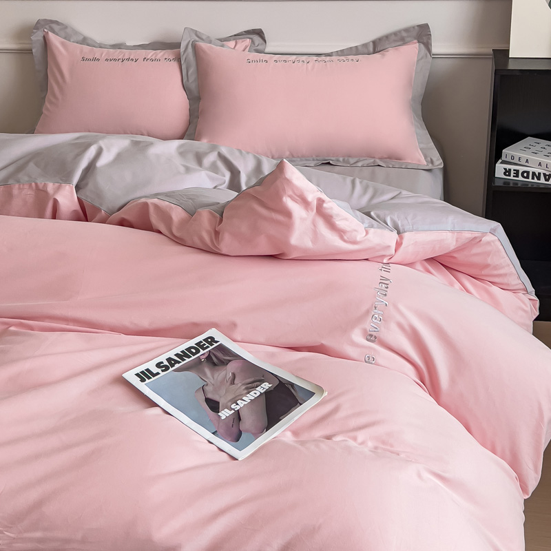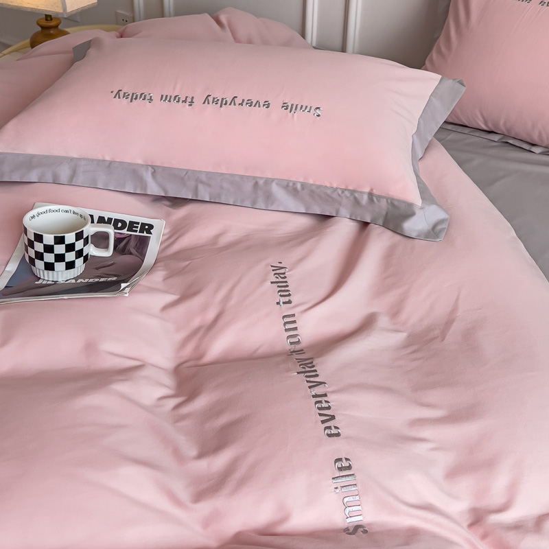 嘉汀兰 2023秋冬新品60支加厚轻奢磨毛撞色绣花四件套—暮里 粉色