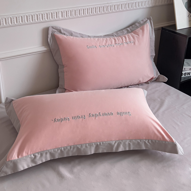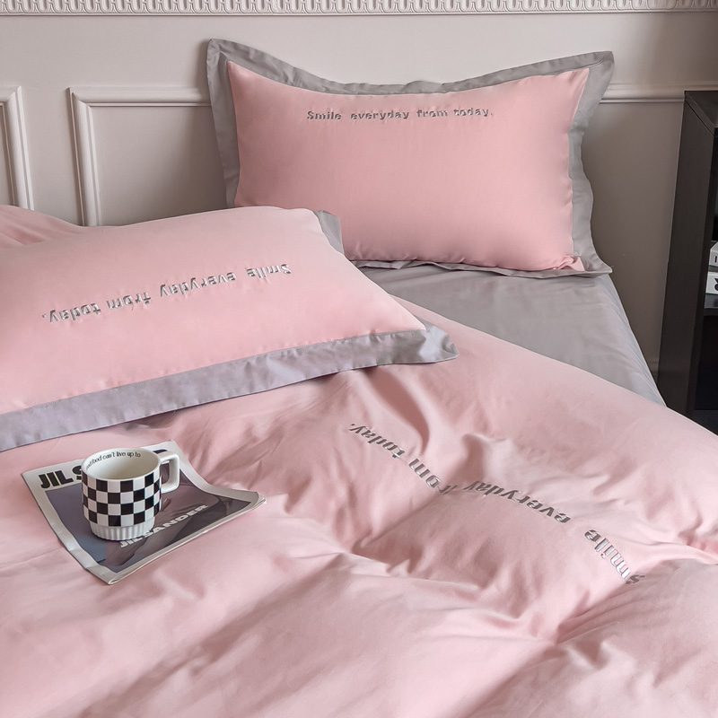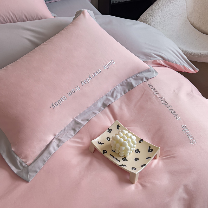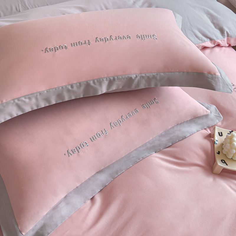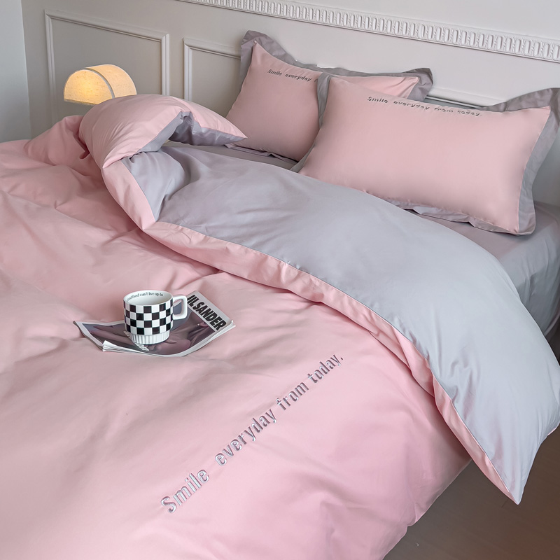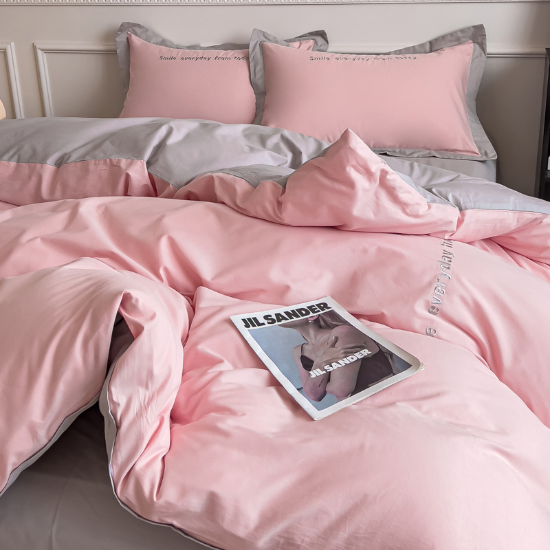 嘉汀兰 2023秋冬新品60支加厚轻奢磨毛撞色绣花四件套—暮里 粉色