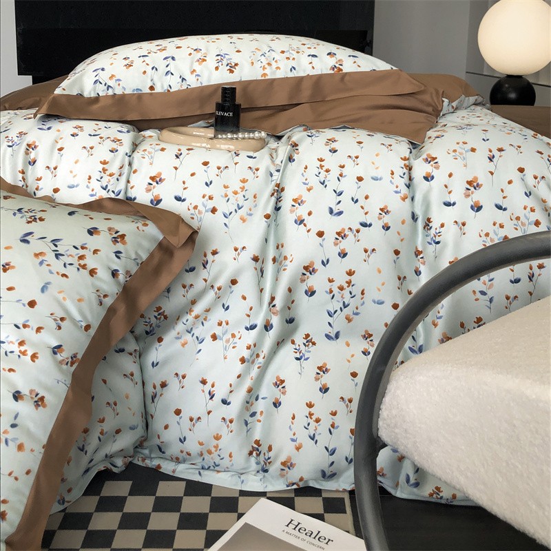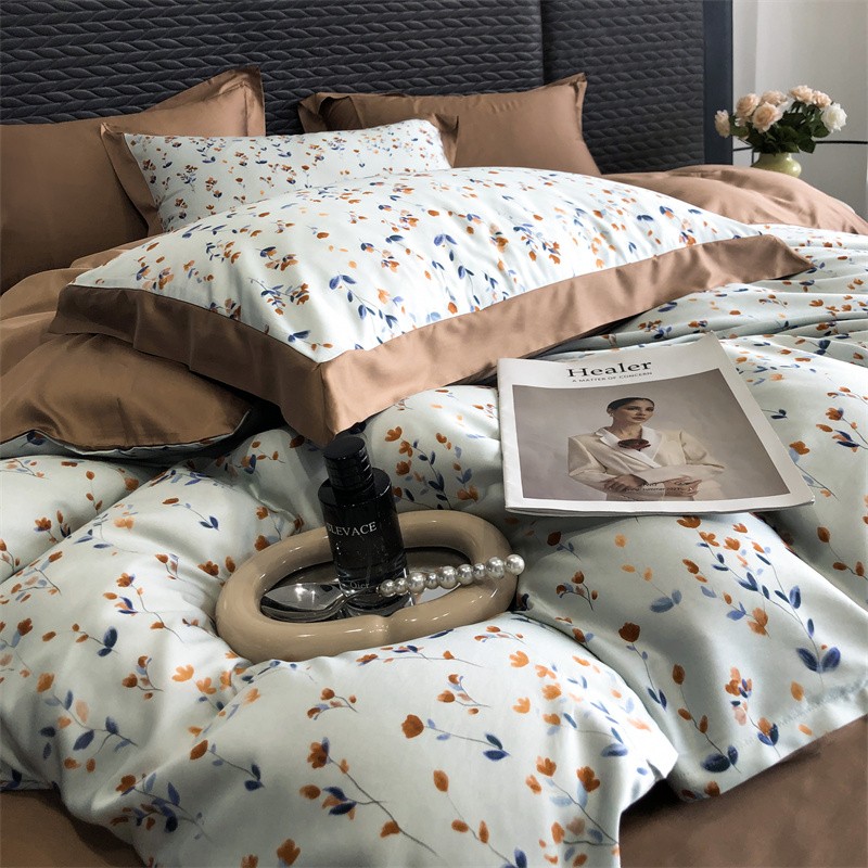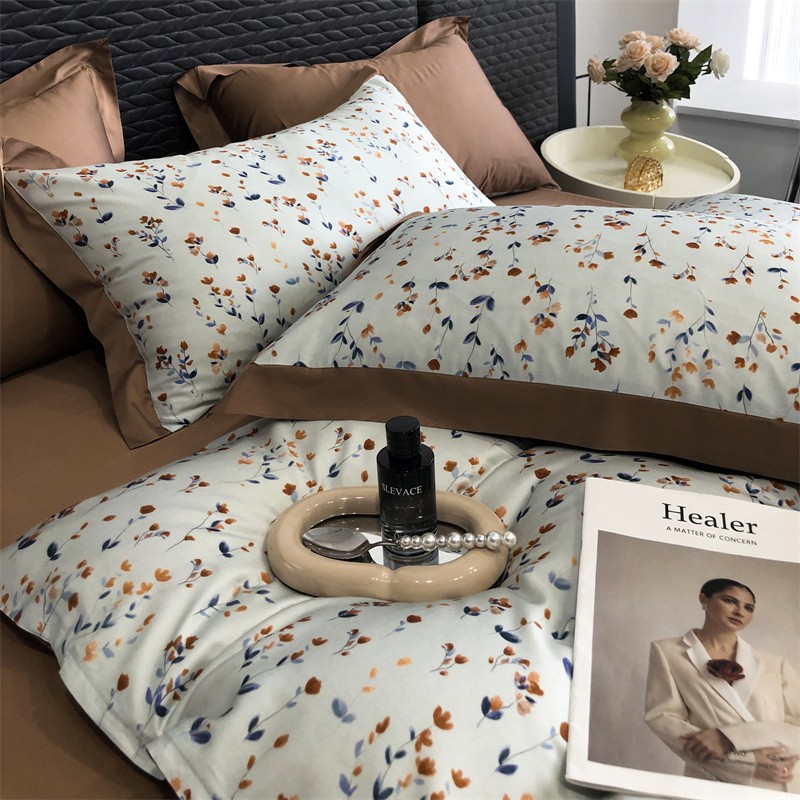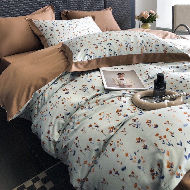 (总)时亿 2023新款100支长绒棉四件套苍兰之约,苍兰之约-橙,苍兰之约-绿