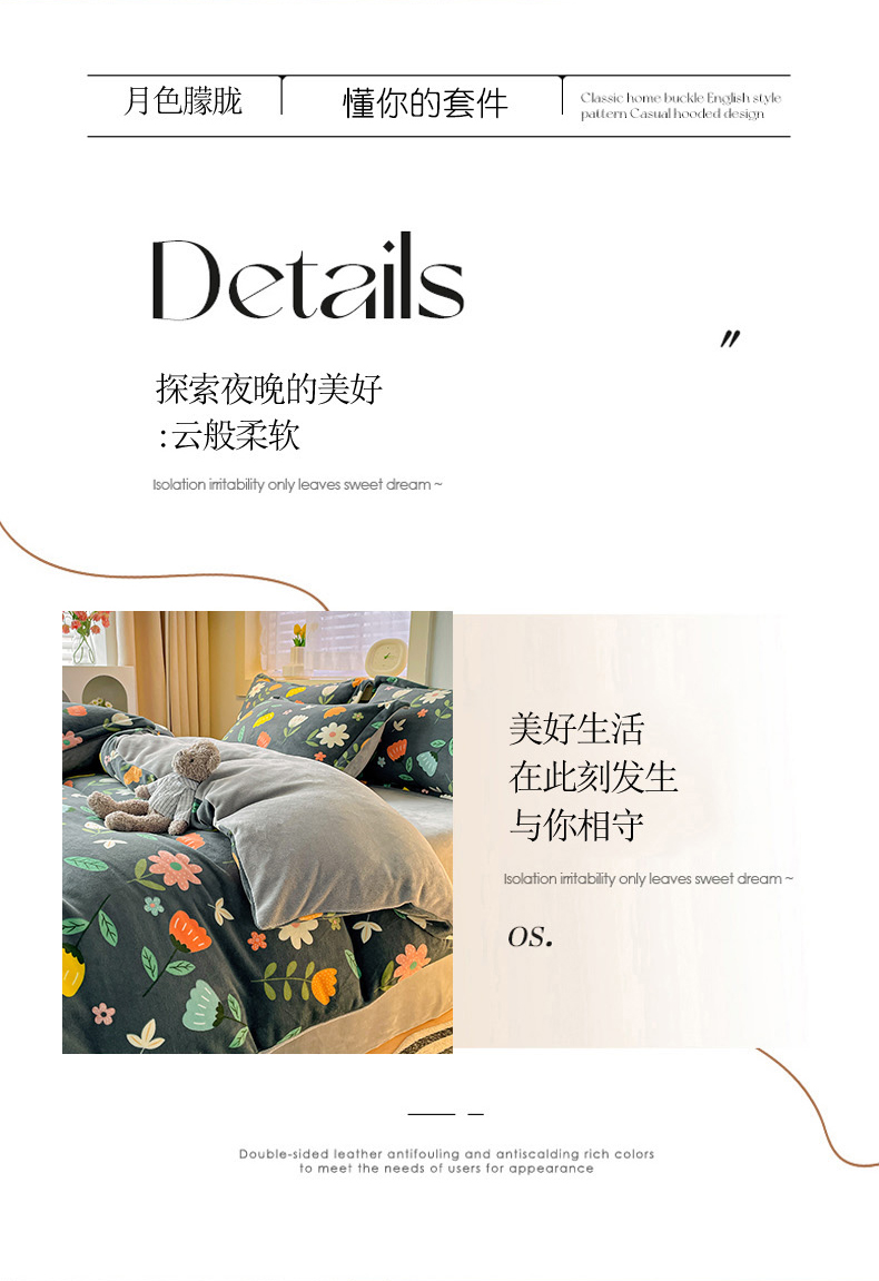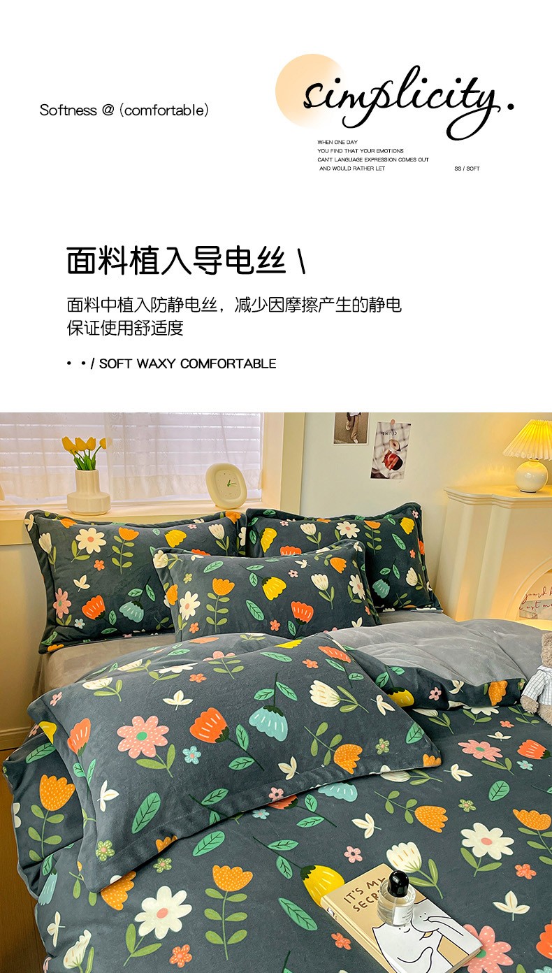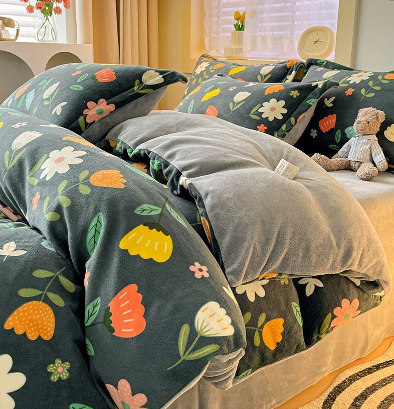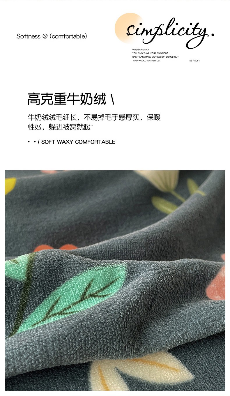 当前位置: 91家纺网 > 商品网购 > 床品套件 > 四件套 > 牛奶绒四件套 > 畅畅家纺 2023新款活性印花小清新AB版加厚高克重法莱绒牛奶绒四件套 丽莎