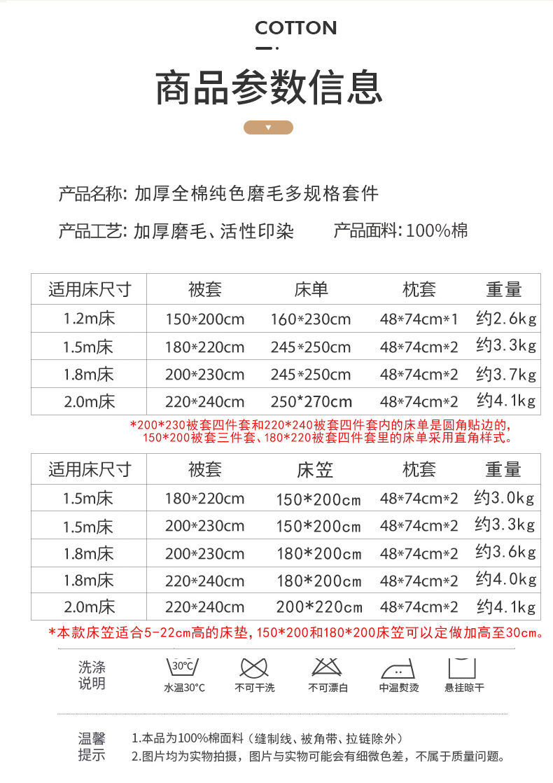 1.5m床笠款四件套(被套180*220cm) | ¥120.00 |