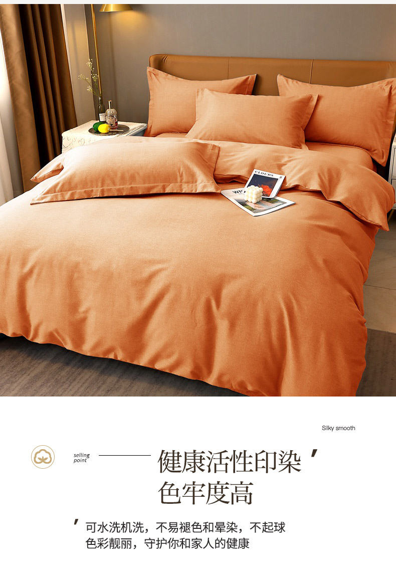 当前位置: 91家纺网 > 商品网购 > 床品套件 > 四件套 > 全棉普通四件套 > 晶缦家纺 2023加厚全棉纯色生态磨毛多规格四件套 纯依-时尚桔