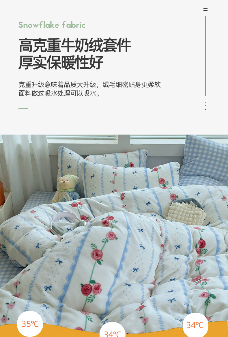 当前位置: 91家纺网 > 商品网购 > 床品套件 > 四件套 > 牛奶绒四件套 > 三朵家纺 2023年牛奶绒小清新系列四件套 星野玫瑰