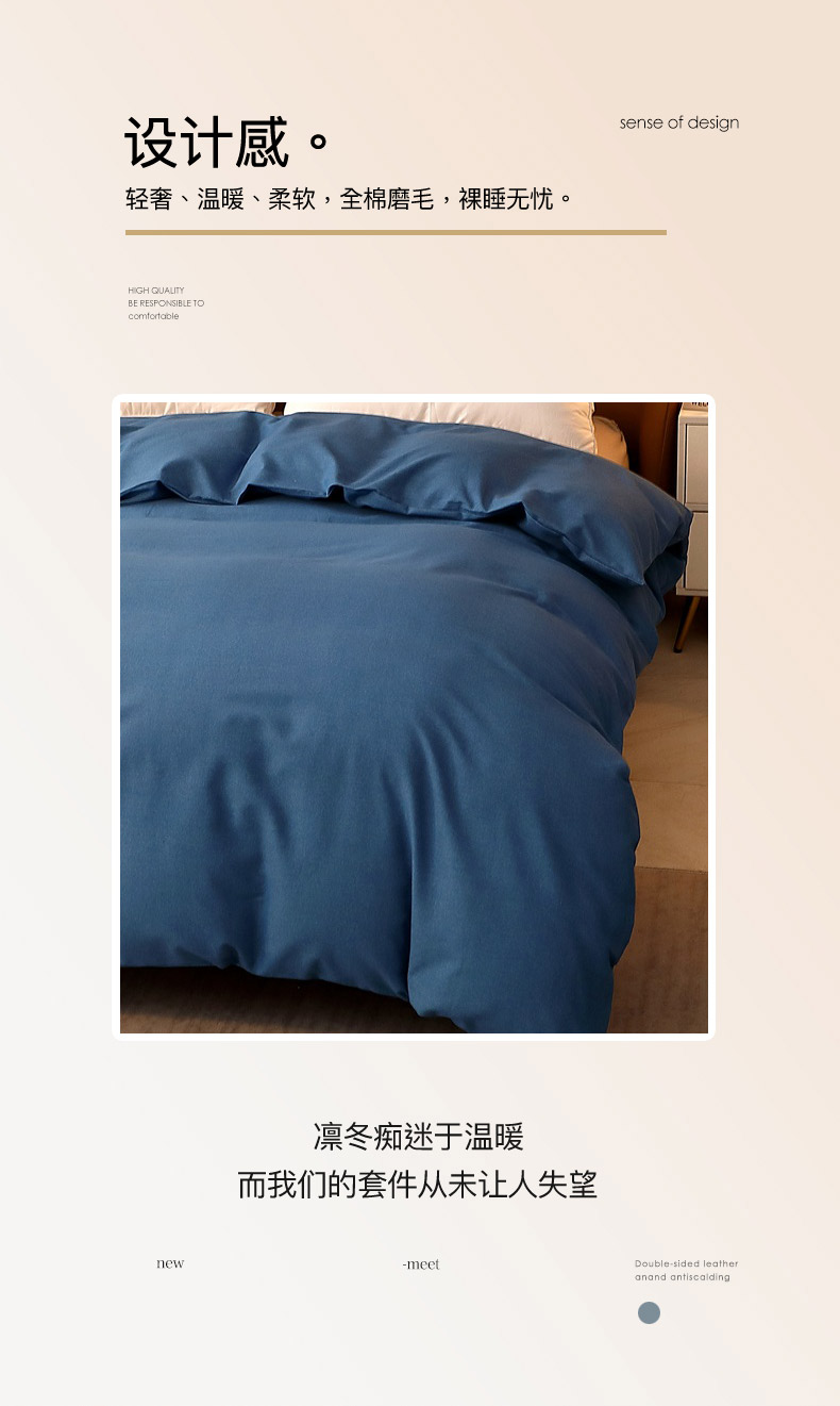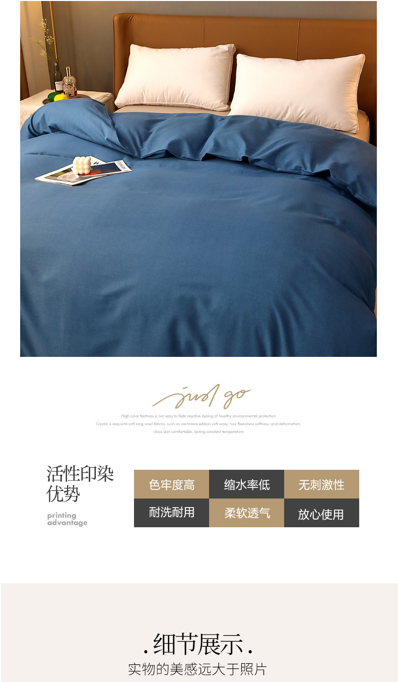 晶缦家纺 2023加厚全棉纯色生态磨毛多规格单品四件套--被套 纯依-宾利蓝