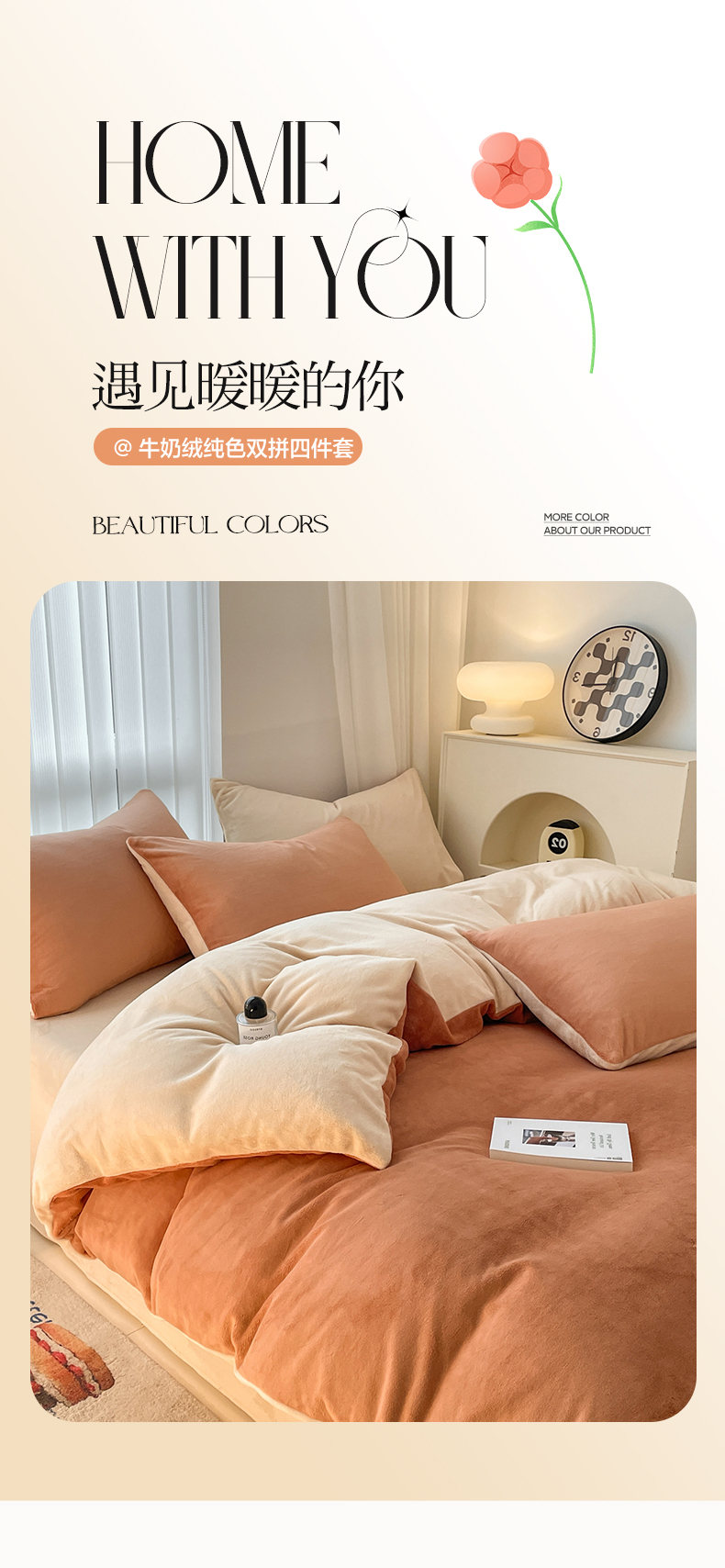 当前位置: 91家纺网 > 商品网购 > 床品套件 > 四件套 > 牛奶绒四件套 > 古吉梦 2023新款牛奶绒纯色双拼(跑量款)四件套 亚麻驼+香槟