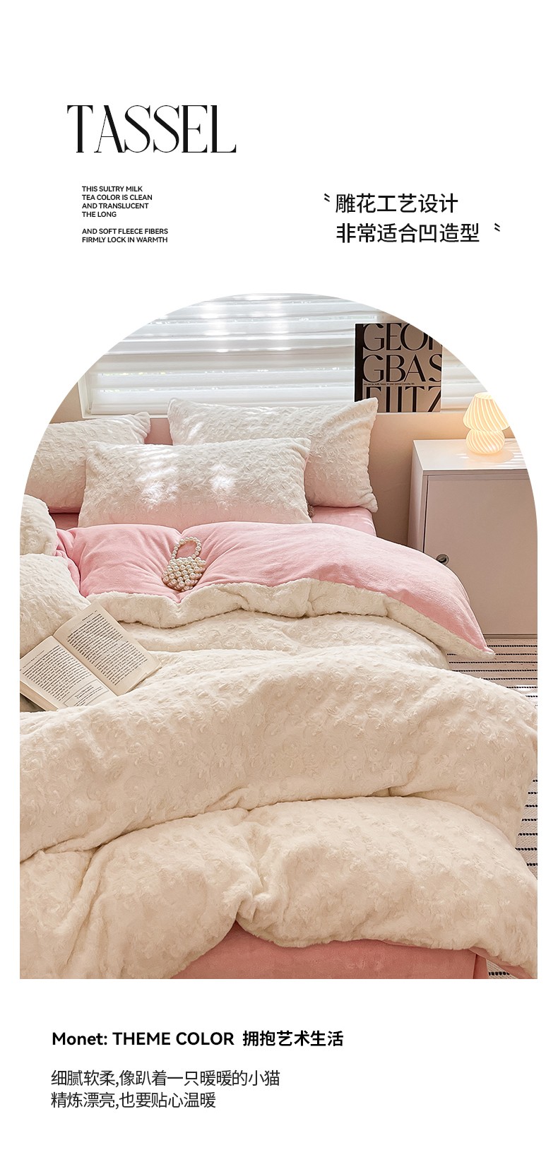 (总)澳梵家居 2025新款雕花牛奶绒韩版四件套-玫瑰蝶语,繁花浅梦,粉黛叶影,粉菱山茶,粉钻花漾,海盐樱桃,菱香山茶,玫瑰蝶语,糖霜玫瑰,月影兔踪-蓝,月影兔踪-玉