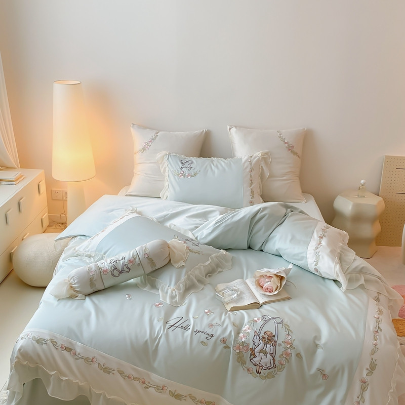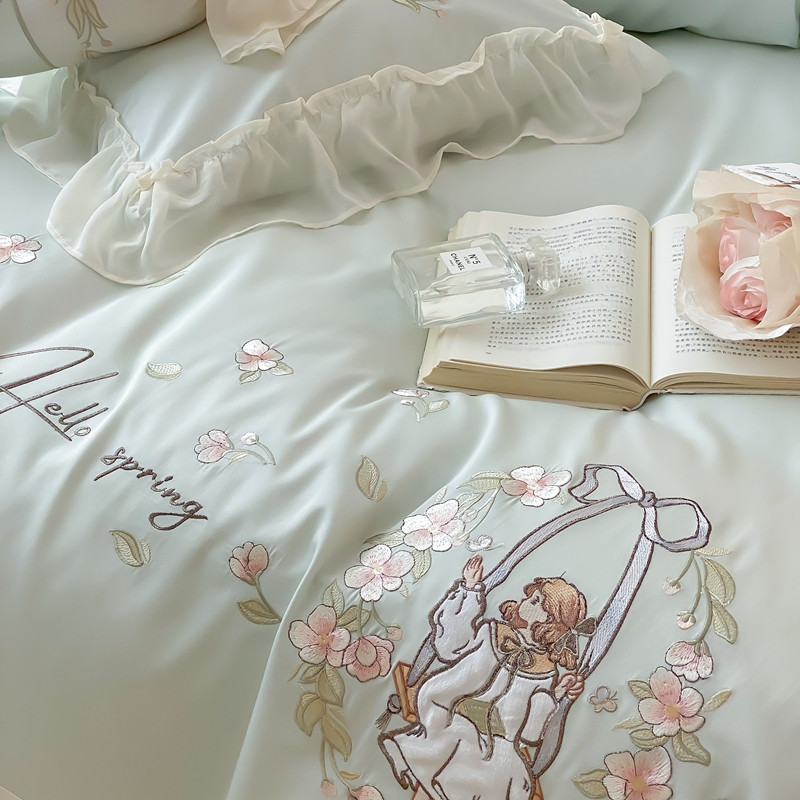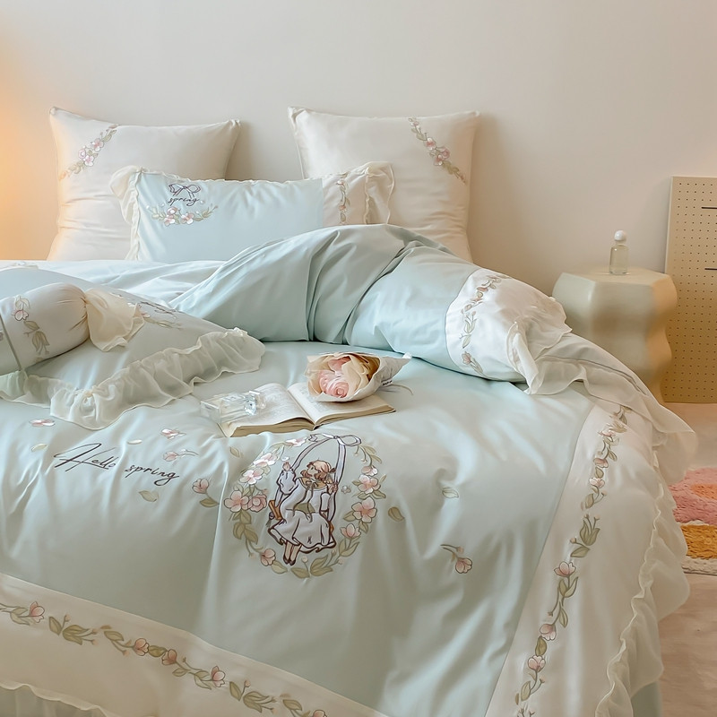 馨蕊家居 2023新款100支全棉刺绣四件套-艾莎公主 艾莎公主-香草绿