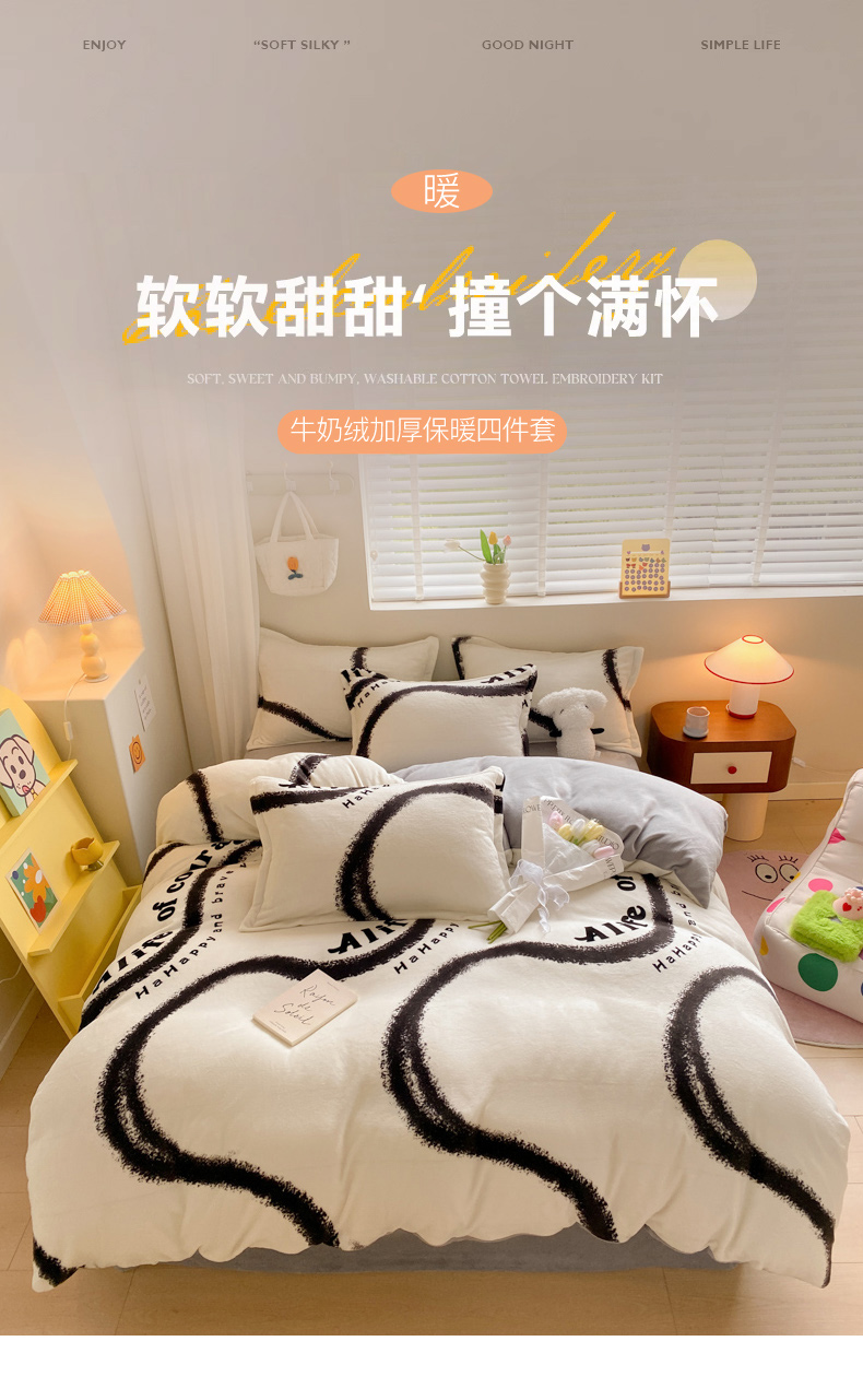当前位置: 91家纺网 > 商品网购 > 床品套件 > 四件套 > 牛奶绒四件套 > 沐慕 2024新款牛奶绒加厚保暖卡通印花四件套 烟雨