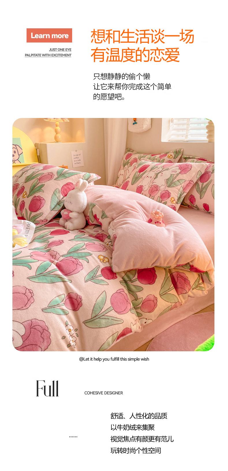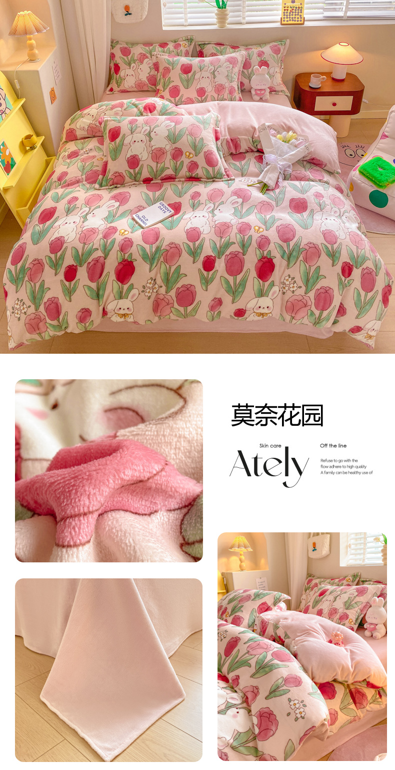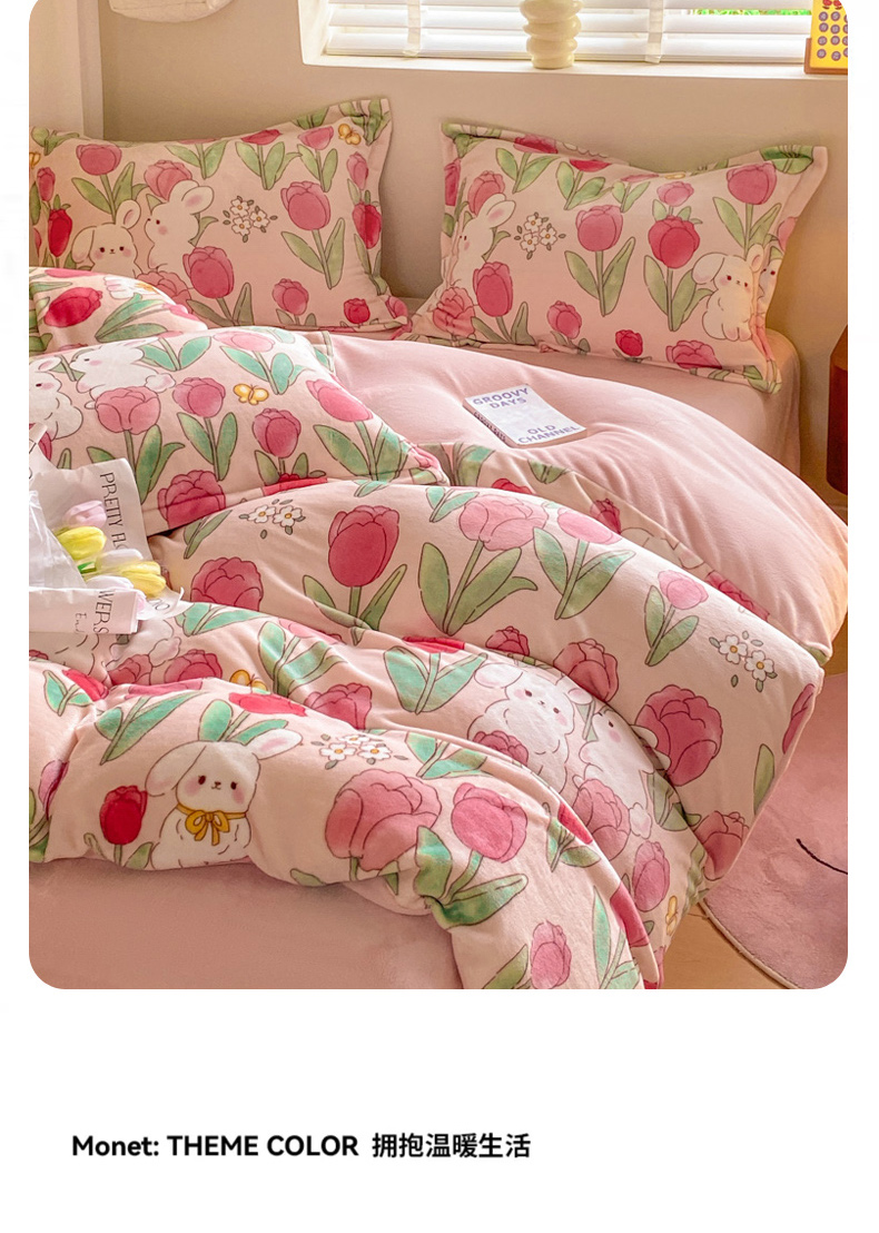 当前位置: 91家纺网 > 商品网购 > 床品套件 > 四件套 > 牛奶绒四件套 > 沐慕 2024新款牛奶绒加厚保暖卡通印花四件套 莫奈花园