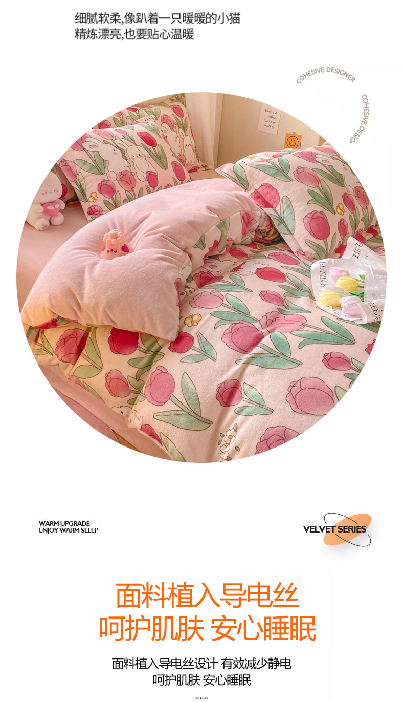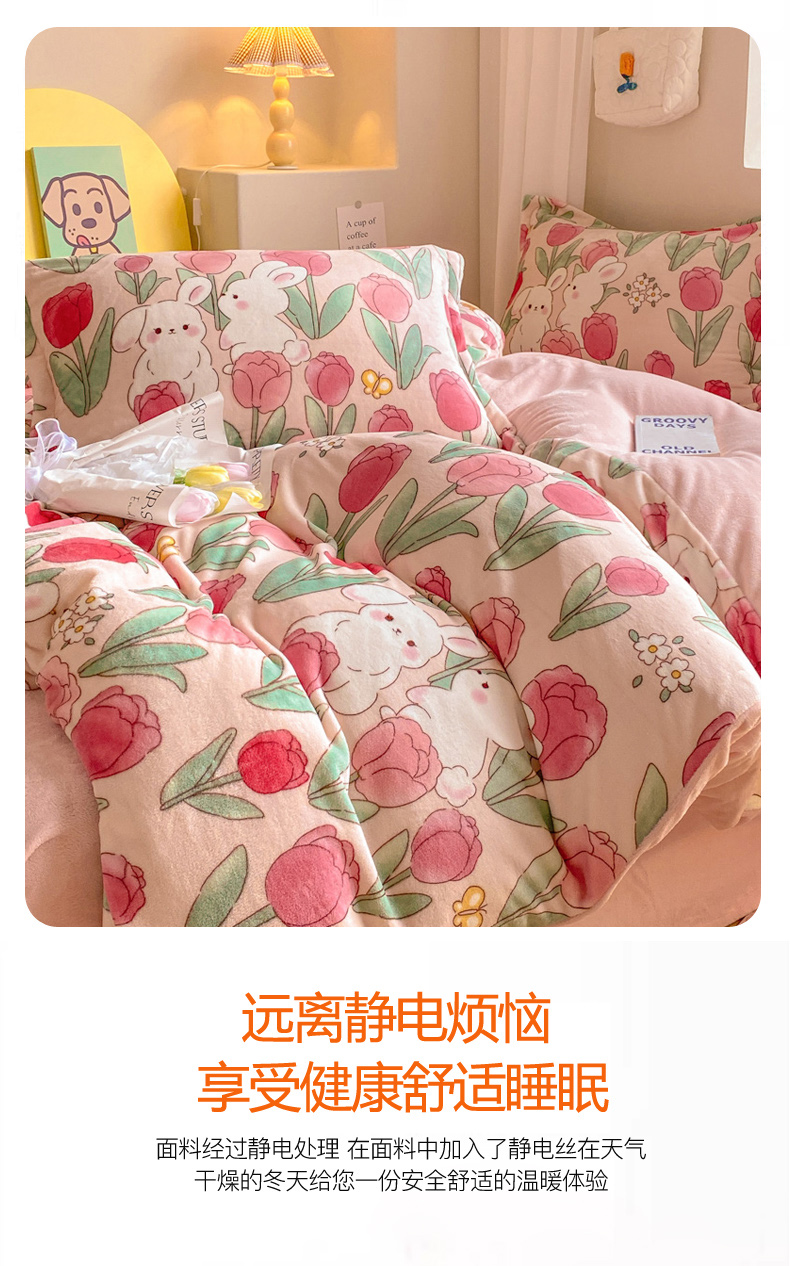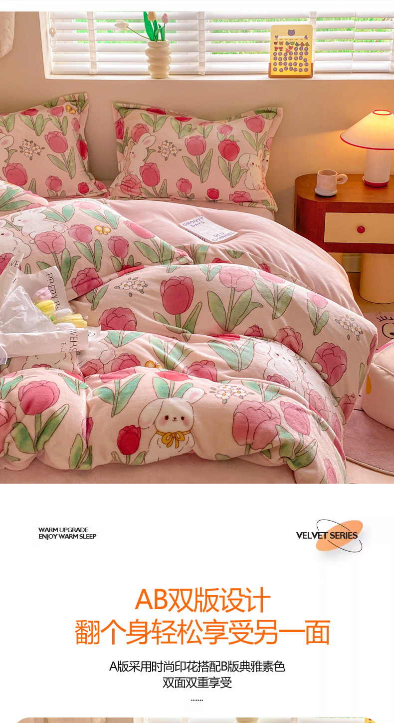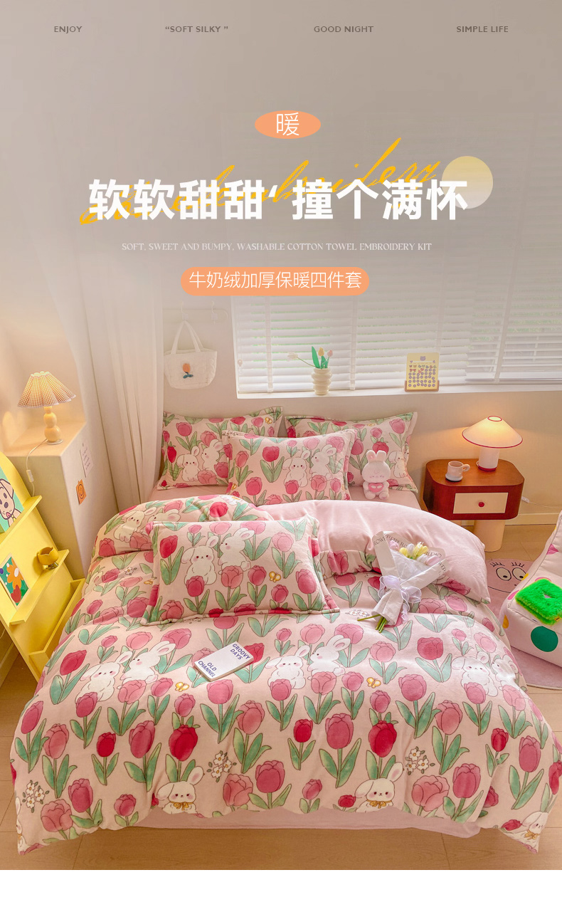 当前位置: 91家纺网 > 商品网购 > 床品套件 > 四件套 > 牛奶绒四件套 > 沐慕 2024新款牛奶绒加厚保暖卡通印花四件套 莫奈花园