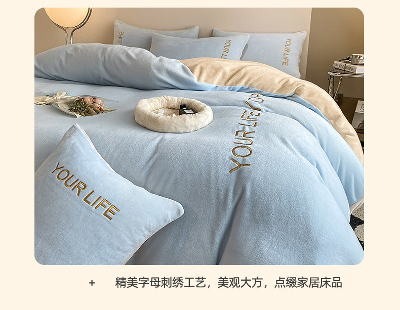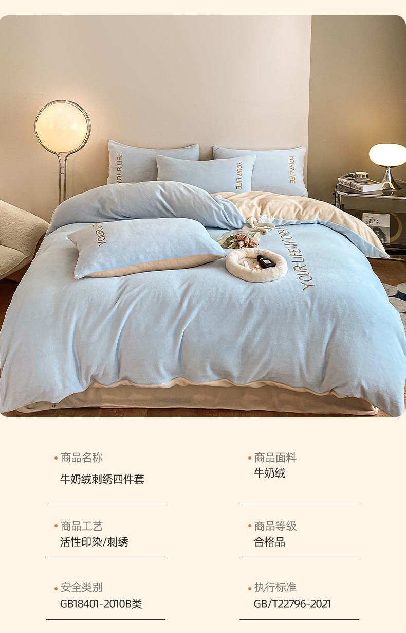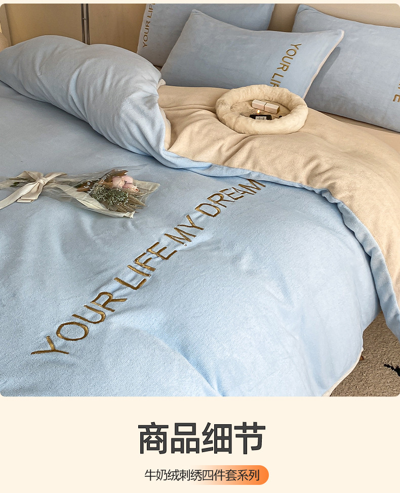 商品名称:义博 2025新款牛奶绒刺绣四件套-浪漫系列 浪漫-天蓝奶咖