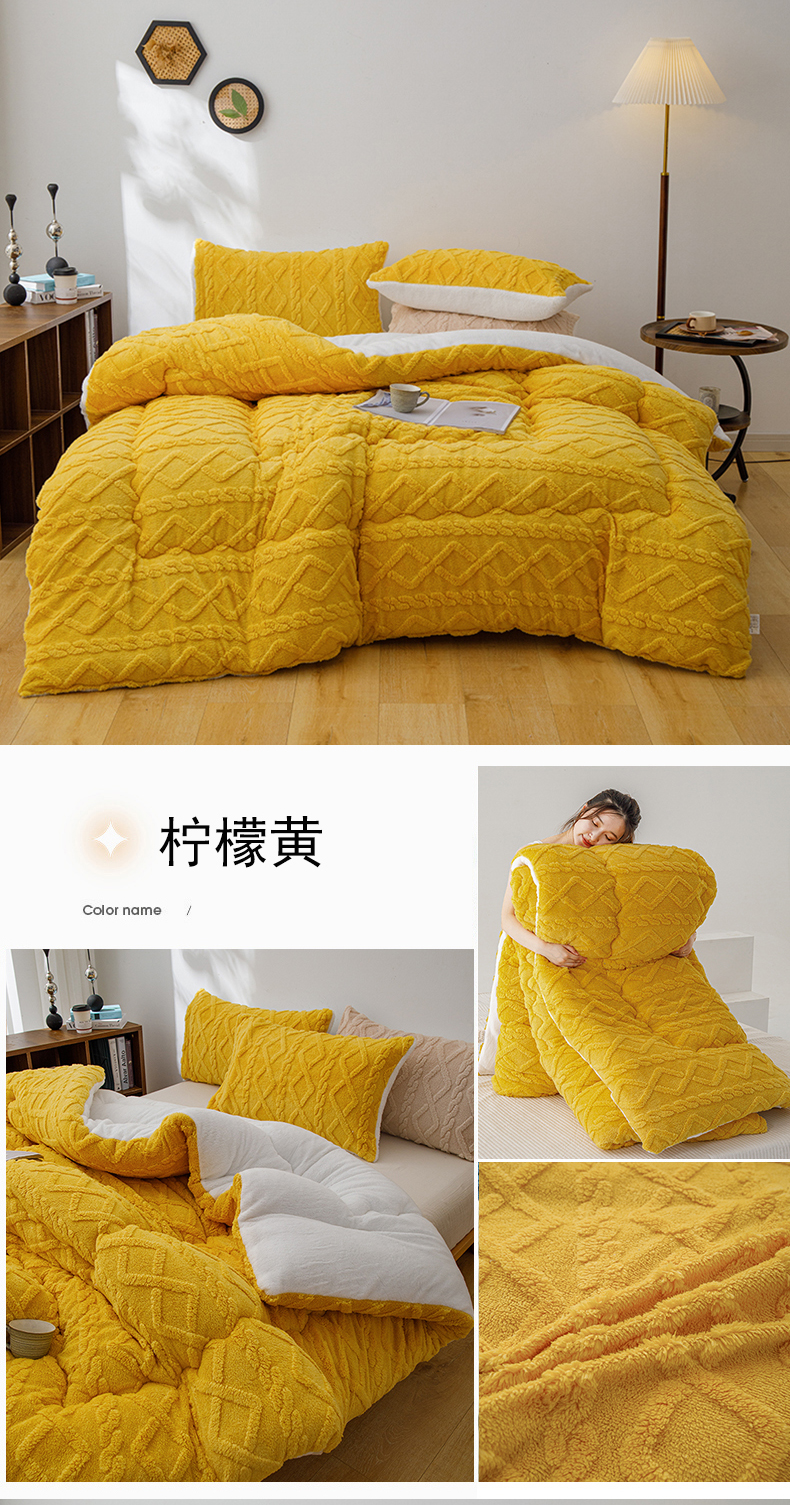 • 91家纺网 家纺一手货源 找家纺 雅蔓依 2025新款塔芙绒羊羔绒冬被被子被芯 柠檬黄