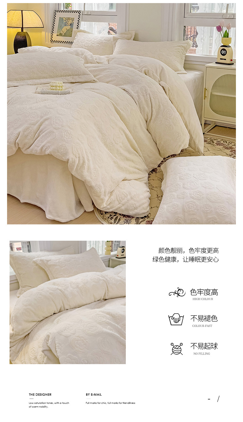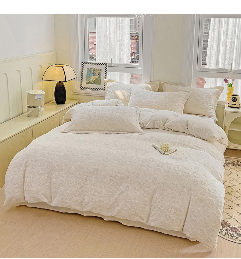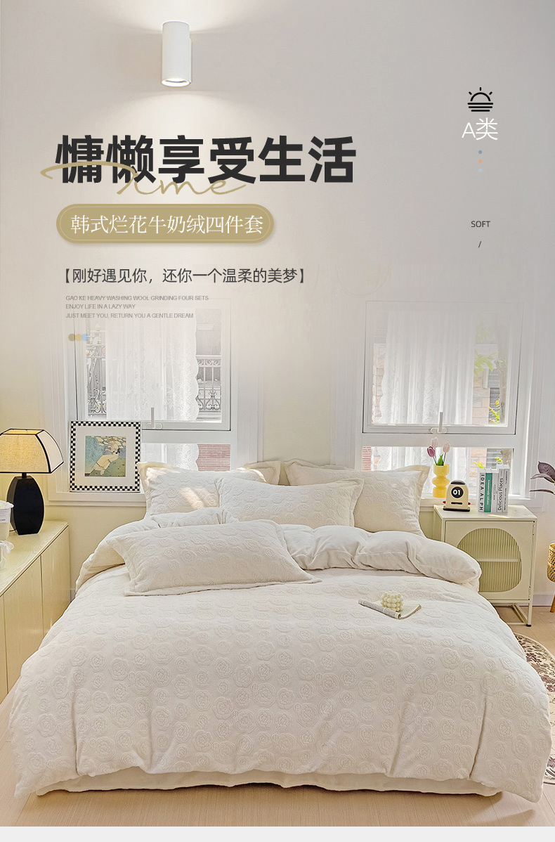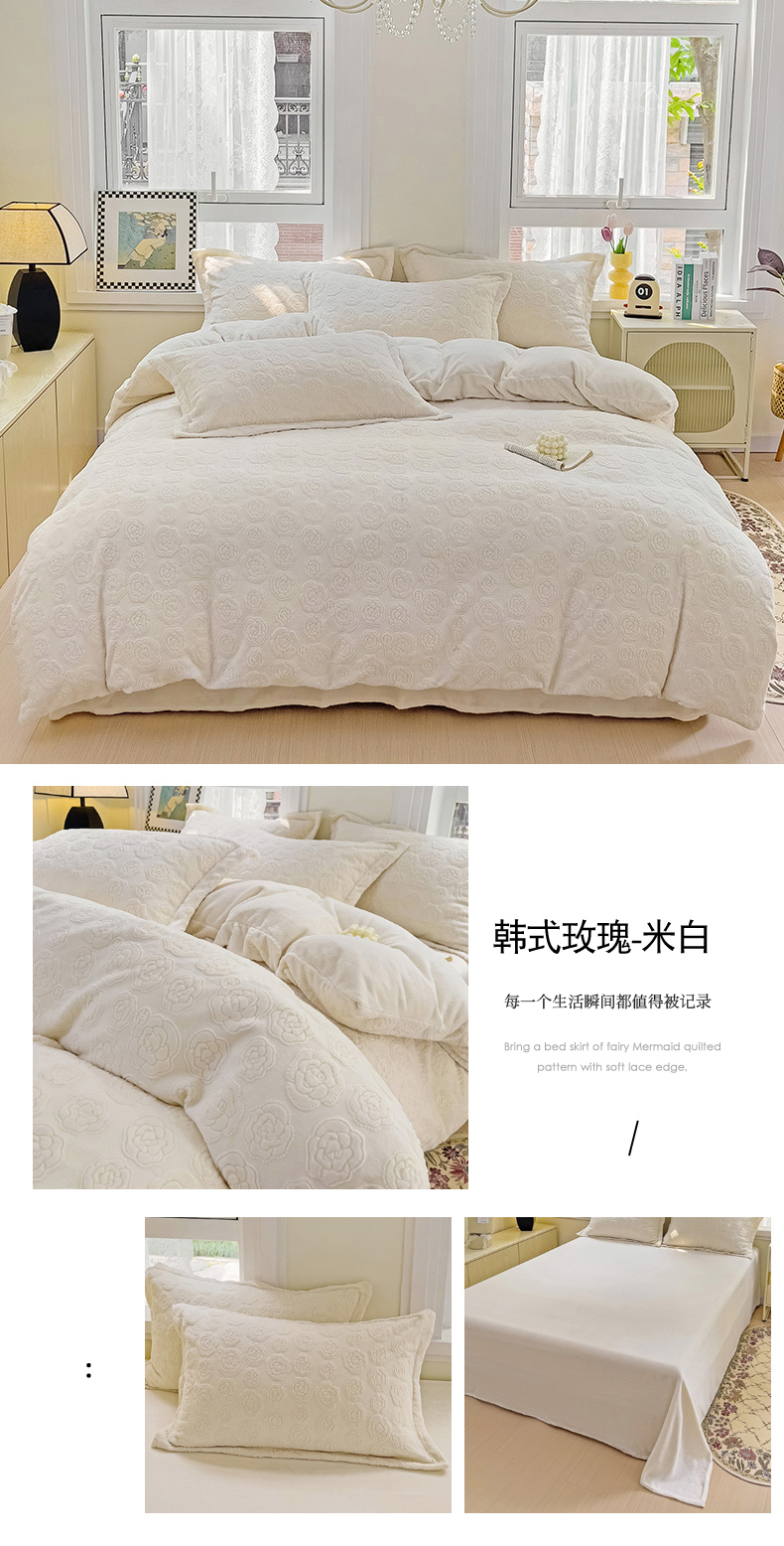 当前位置: 91家纺网 > 商品网购 > 床品套件 > 四件套 > 牛奶绒四件套 > 寐居家纺 2023年高克重烂花牛奶绒四件套 韩式玫瑰-米白