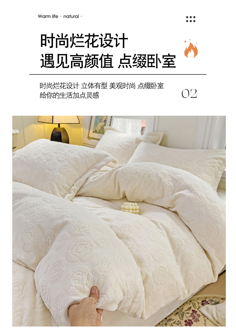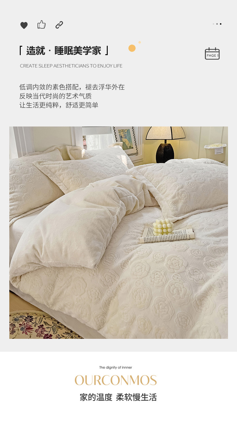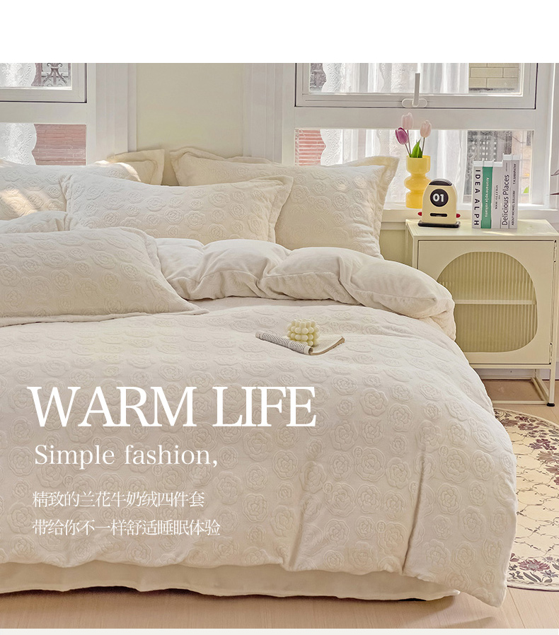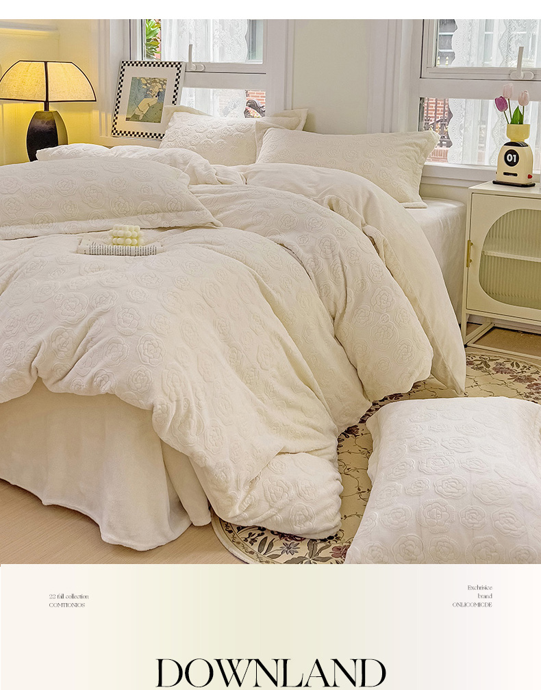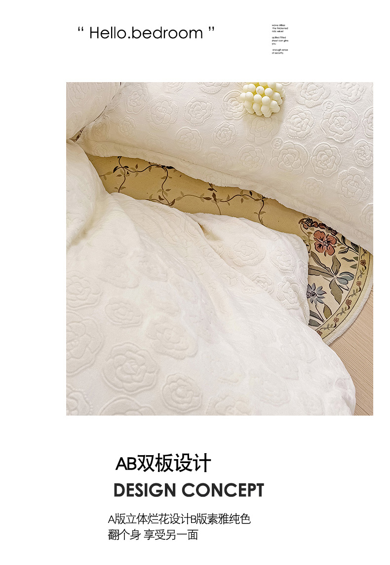 当前位置: 91家纺网 > 商品网购 > 床品套件 > 四件套 > 牛奶绒四件套 > 寐居家纺 2023年高克重烂花牛奶绒四件套 韩式玫瑰-米白
