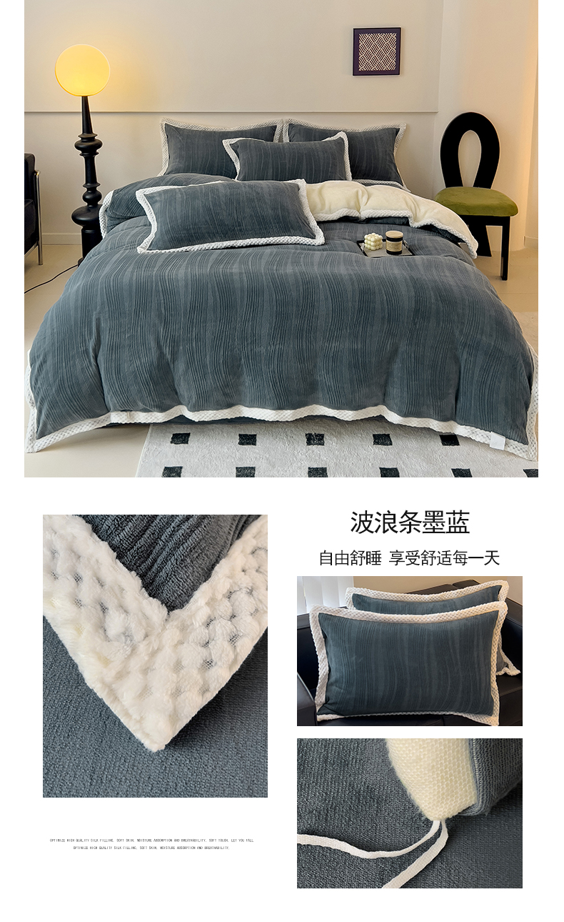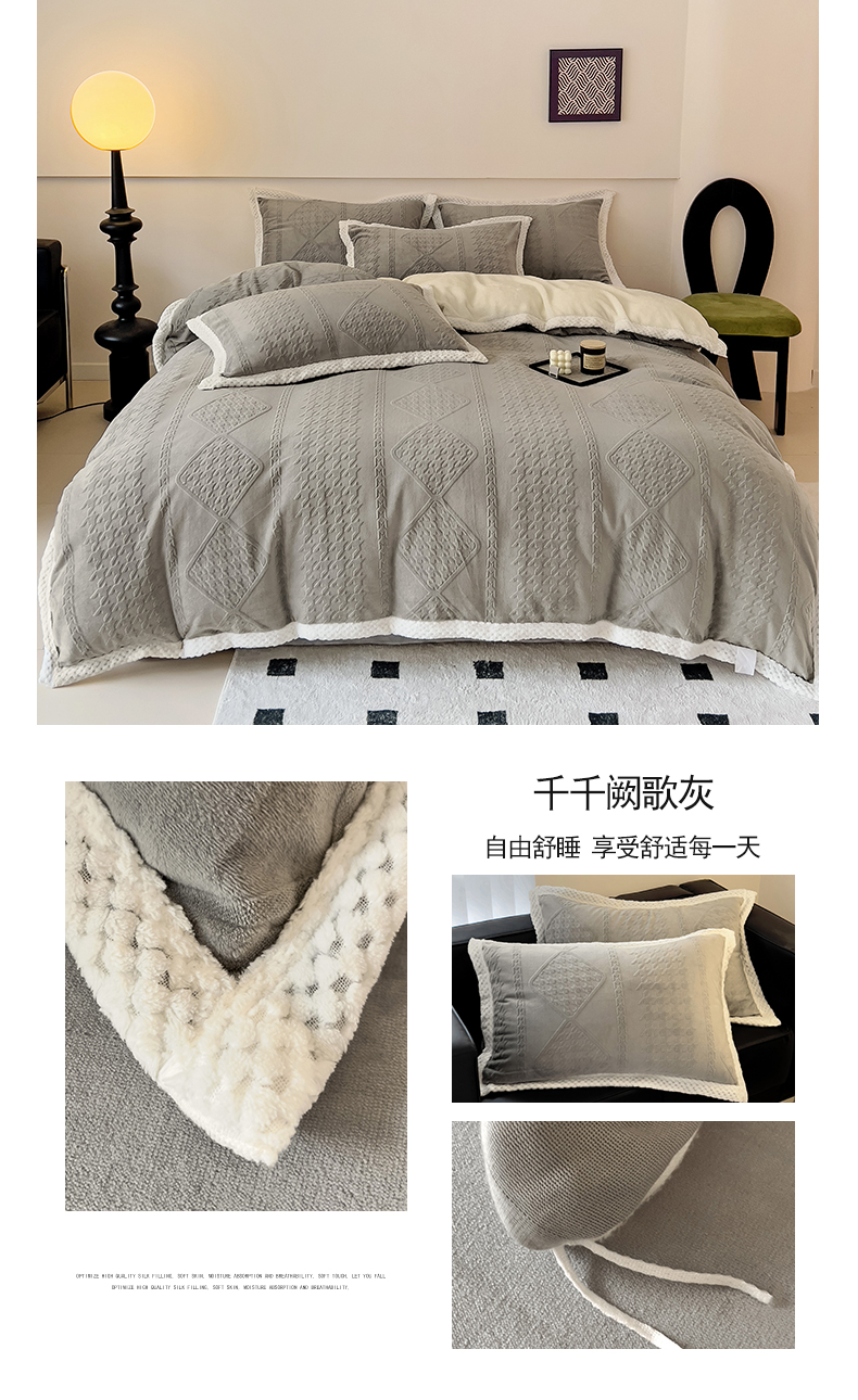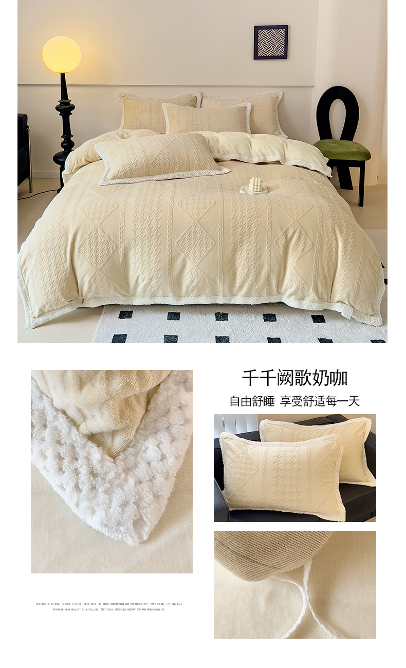 商品名称:(总)琪格格纺织 2023新款暖绒包边雕花绒简约款四件套