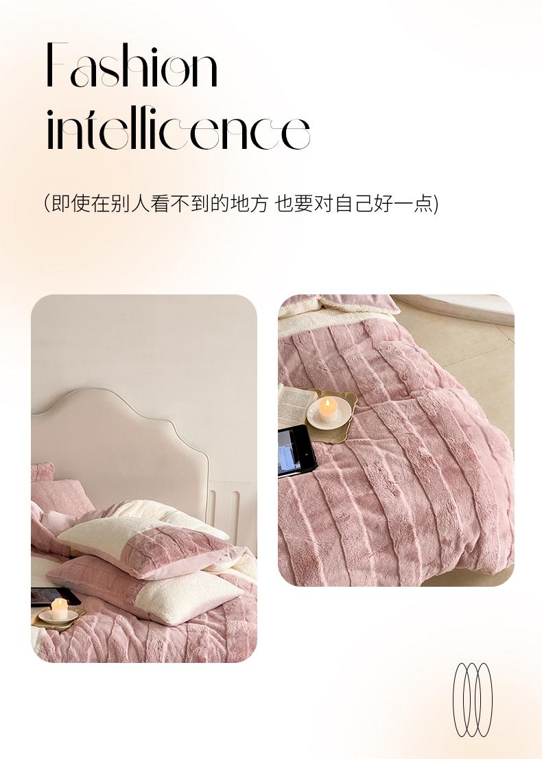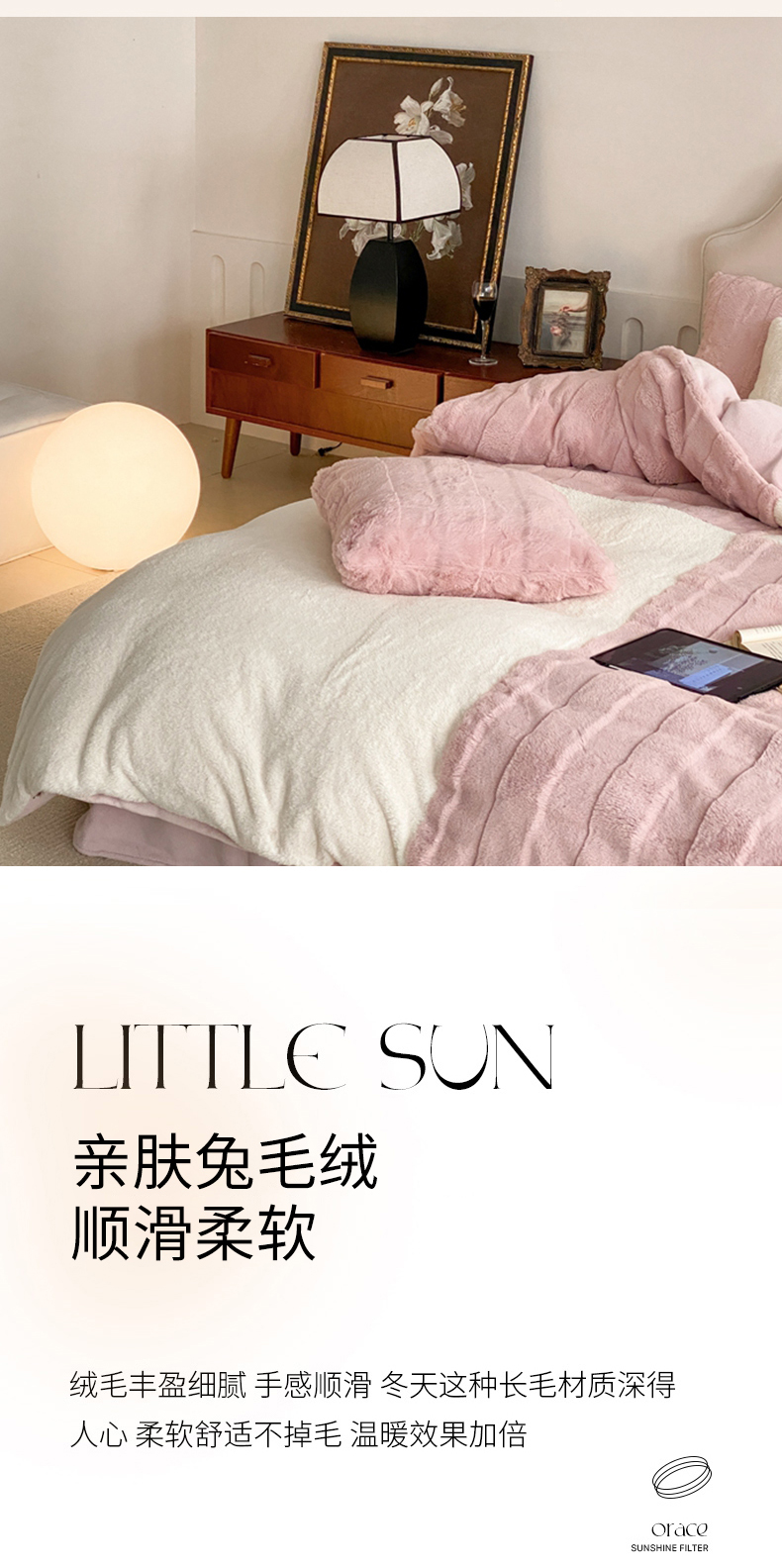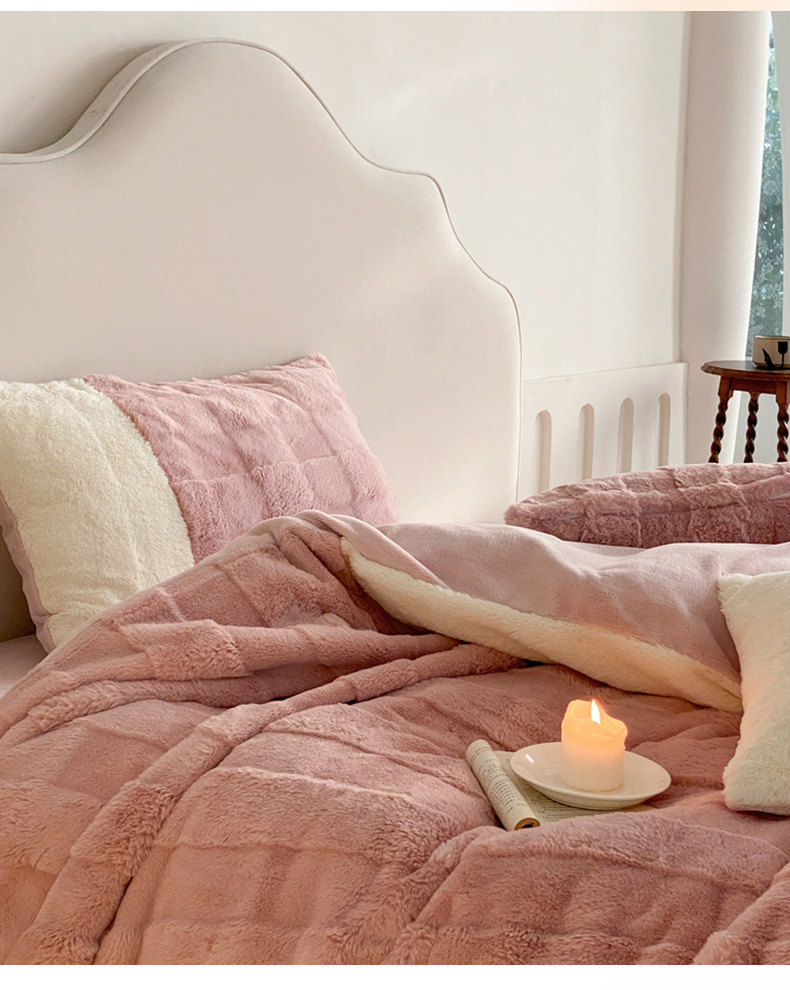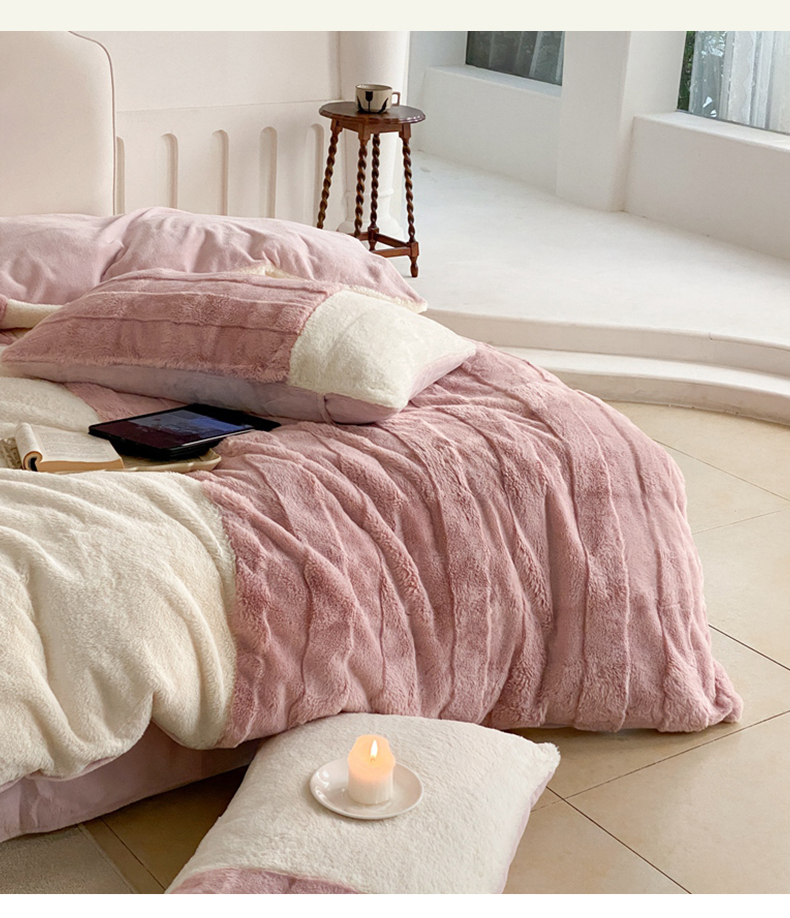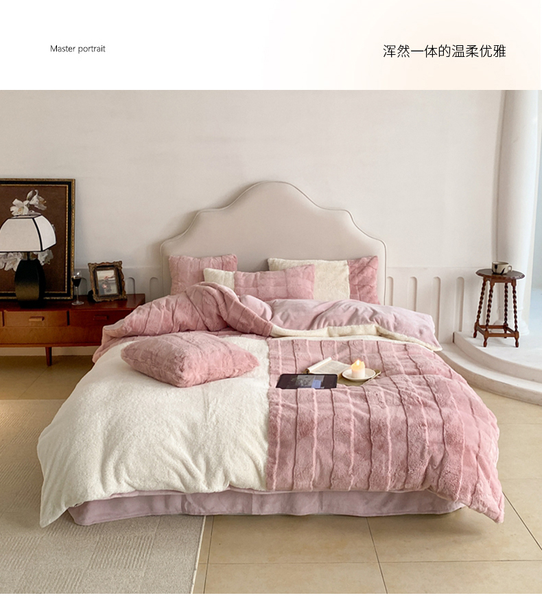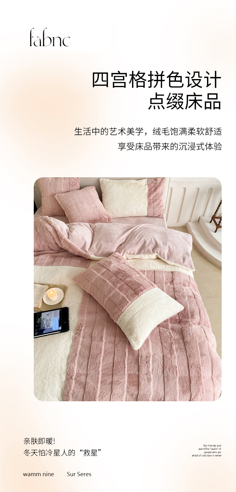 潘朵拉 2023新款兔毛四宫格极有家小红书风格拼色牛奶绒四件套 梵希(豆沙)