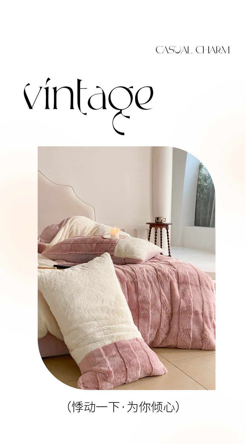 商品名称:潘朵拉 2023新款兔毛四宫格极有家小红书风格拼色牛奶绒四件套 梵希(豆沙)