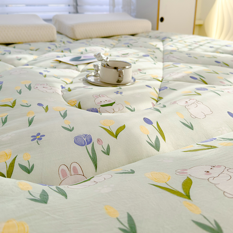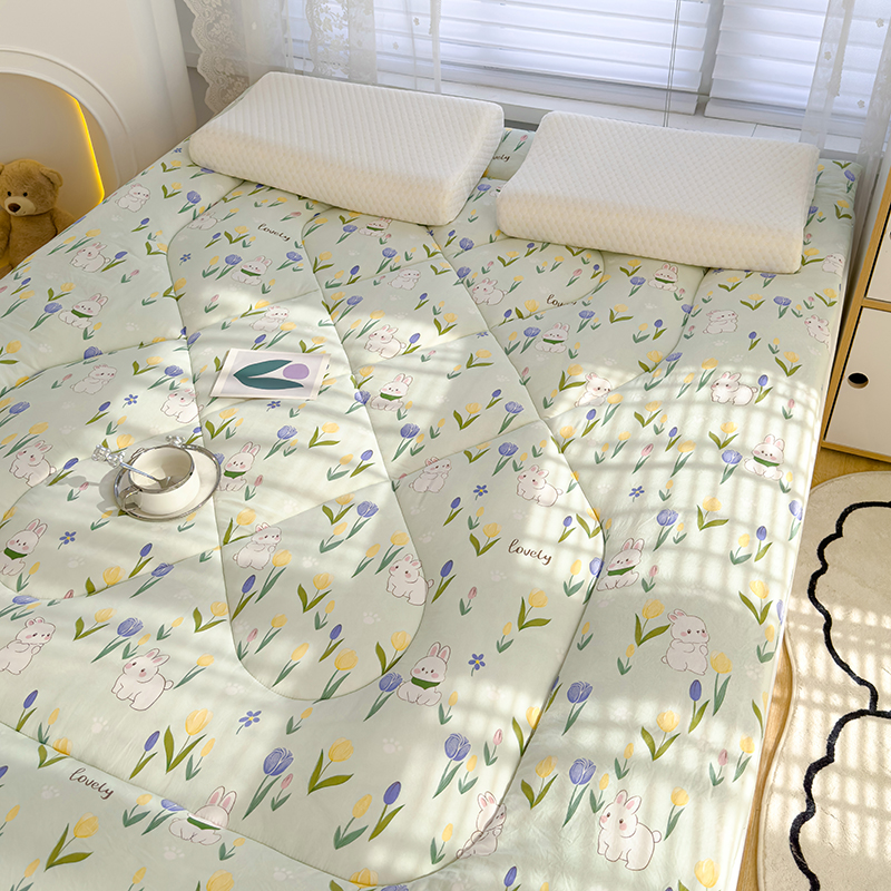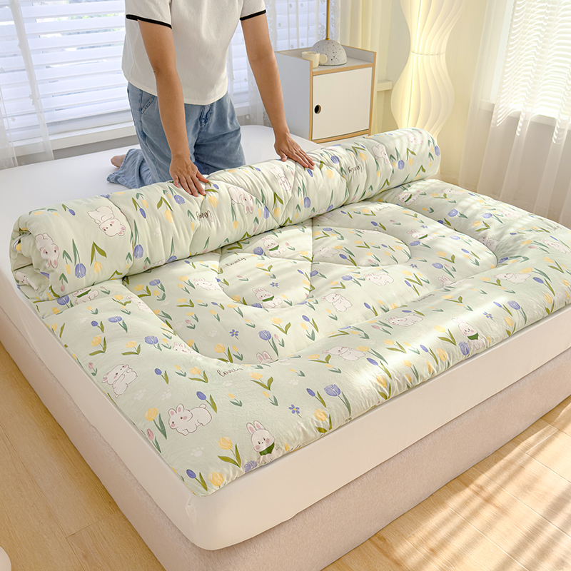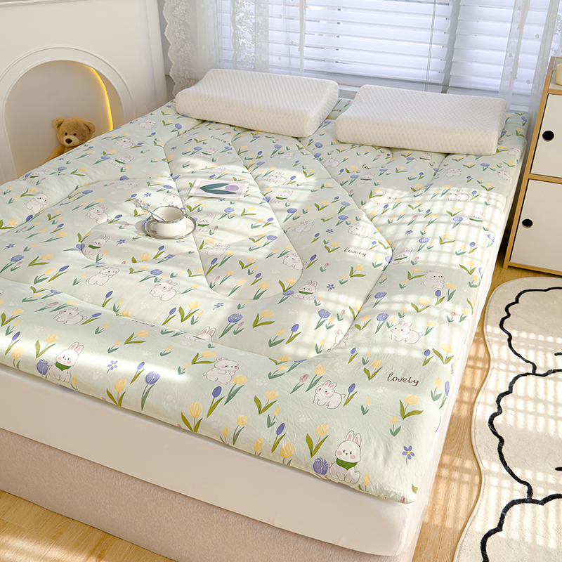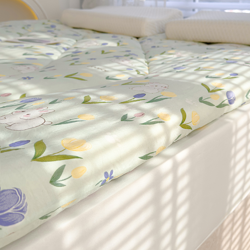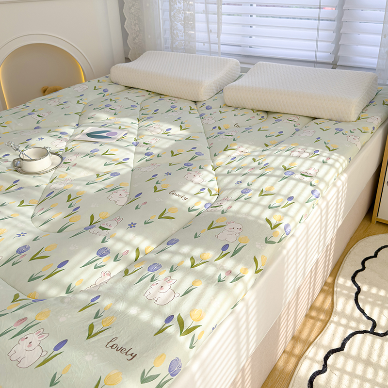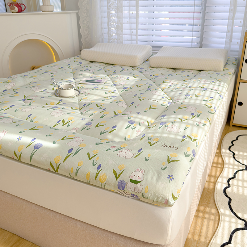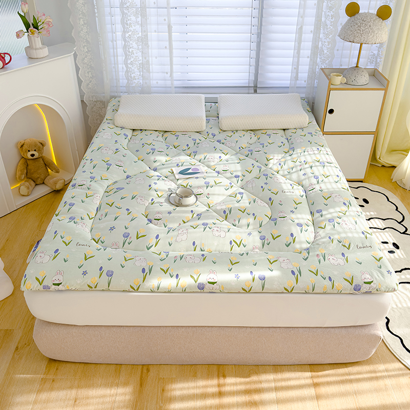 蓝冰家纺 2024新款蓝冰双层纱印花床垫 夹心果冻