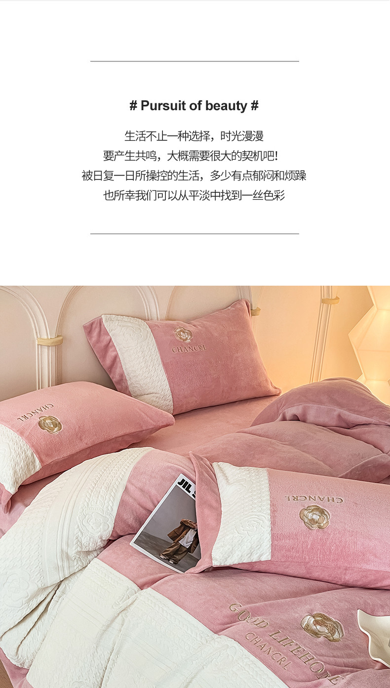 当前位置: 91家纺网 > 商品网购 > 床品套件 > 四件套 > 牛奶绒四件套 > 娜娜 2023新款牛奶绒三拼轻奢风四件套 豆沙