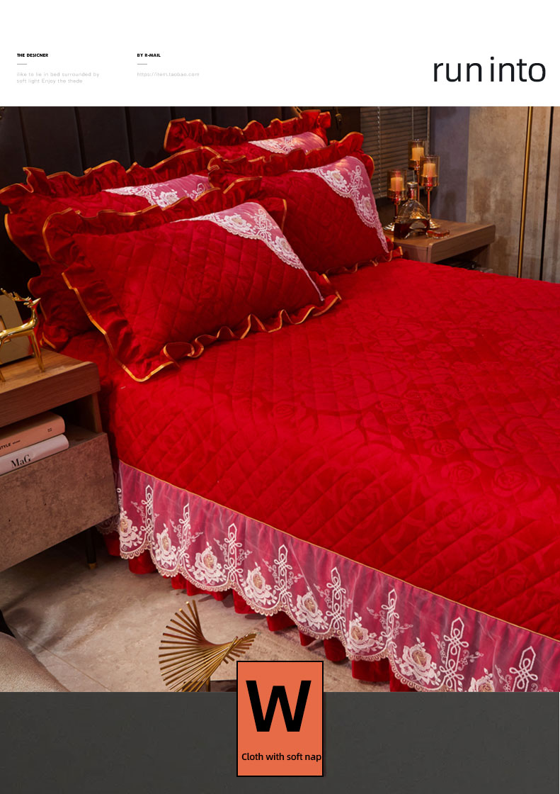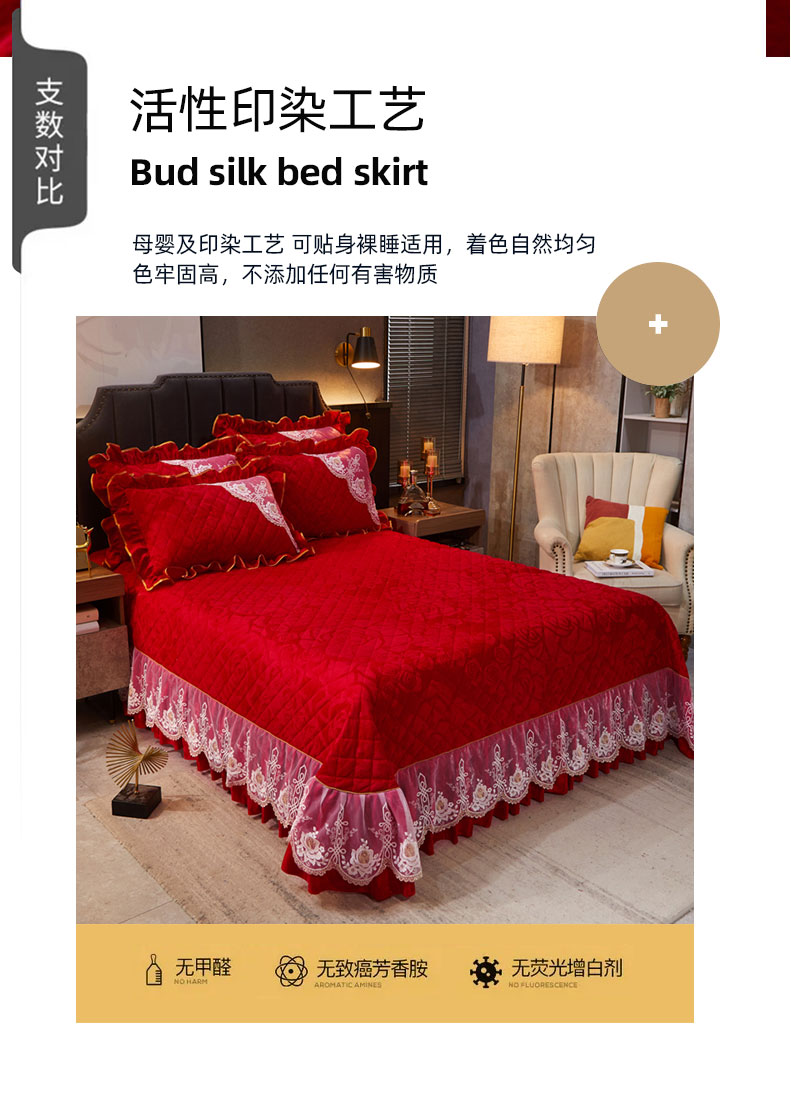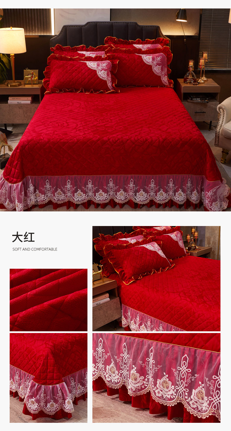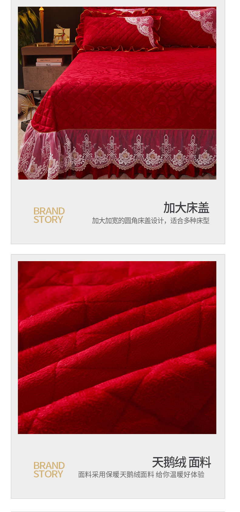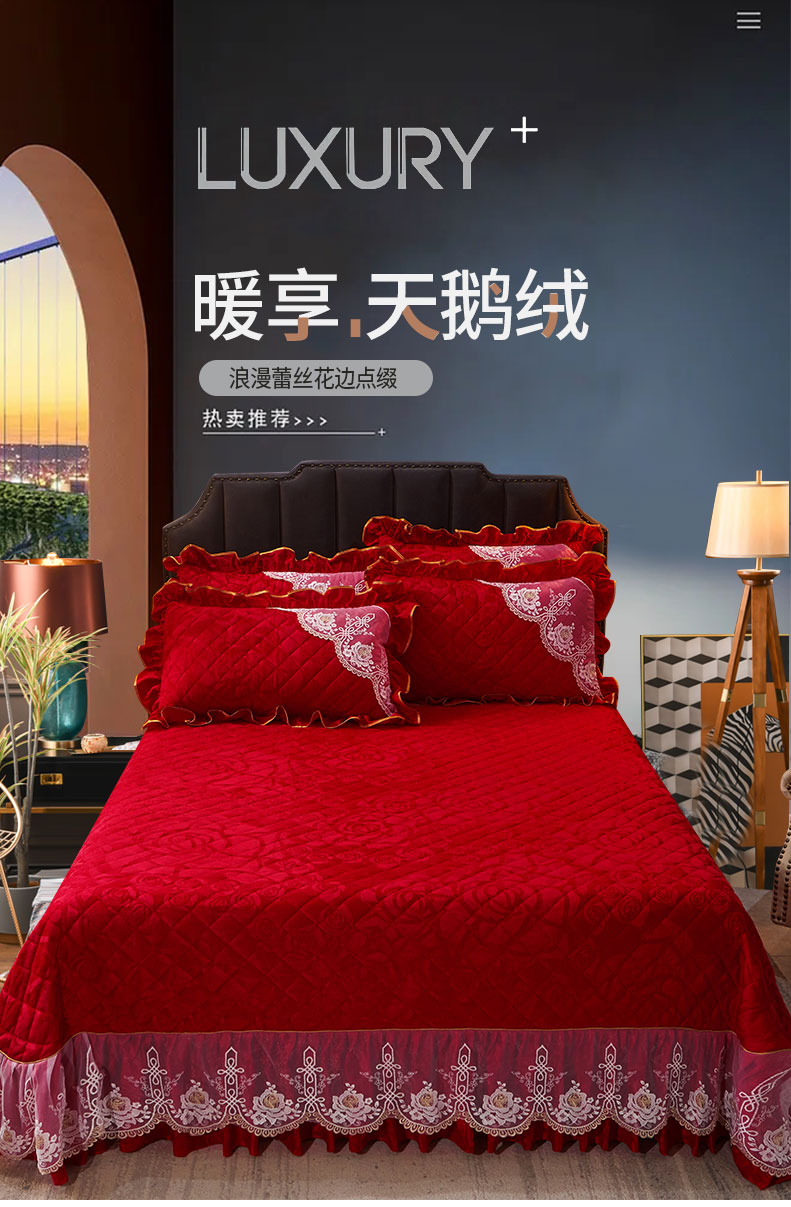 商品名称:恋尚 2023新款天鹅绒可脱卸夹棉床盖 大红