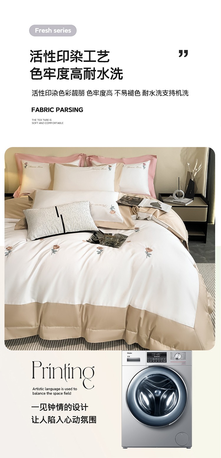(总)星蕴家纺 2024新款A类13376新疆全棉刺绣四件套,高级灰,奶昔白,千禧粉,浅香槟