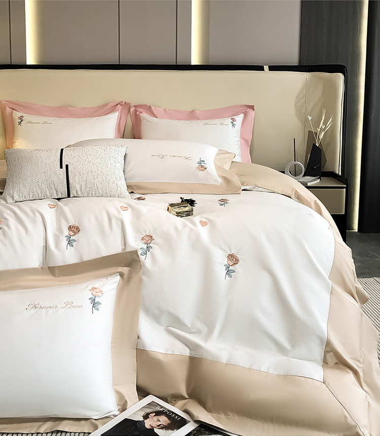 (总)星蕴家纺 2025新款100支双股长绒棉全棉纯棉刺绣四件套-柏林系列,柏林 香槟金,柏林 星空灰,柏林 可可粉,柏林 贵族白,柏林 云山蓝