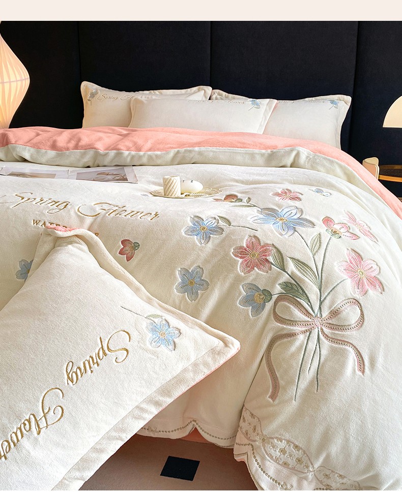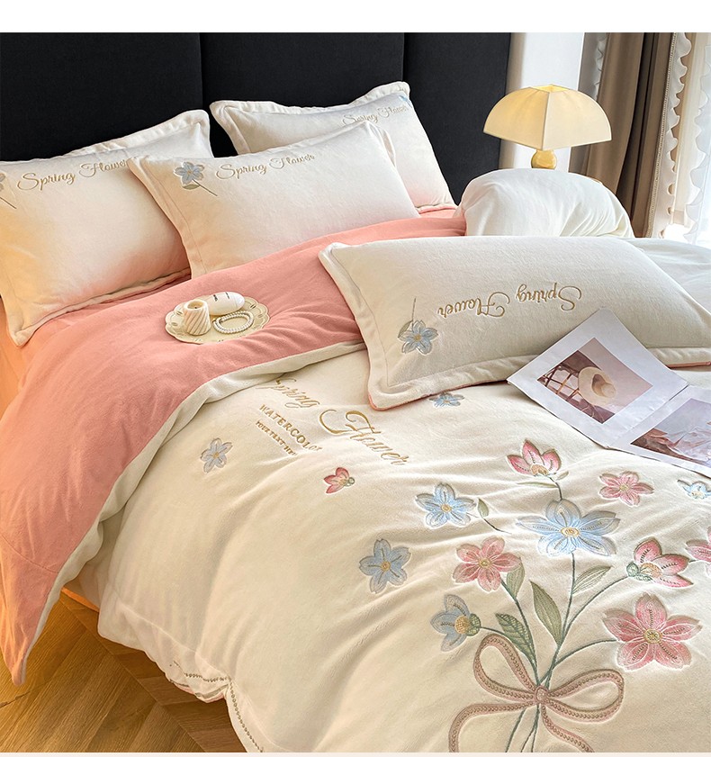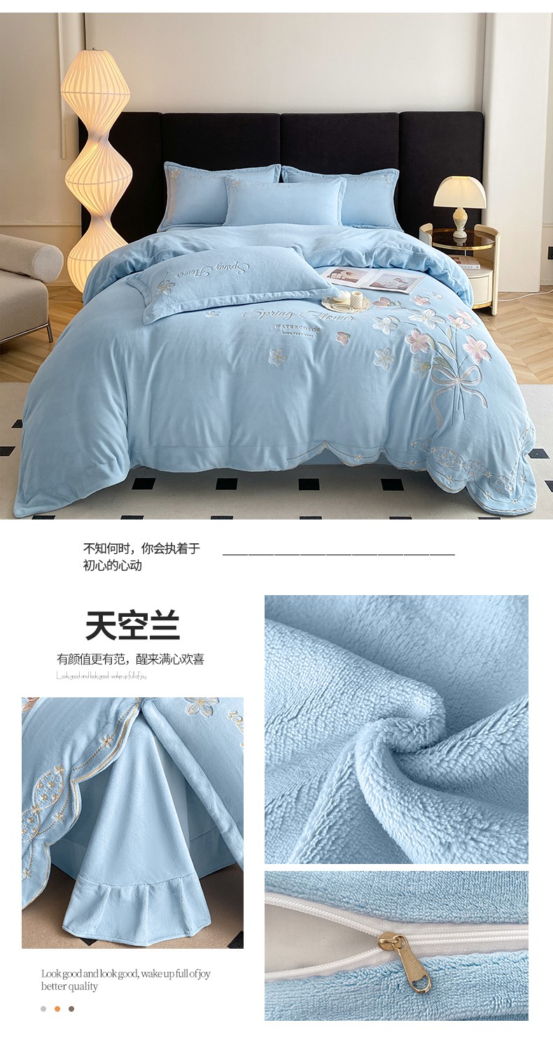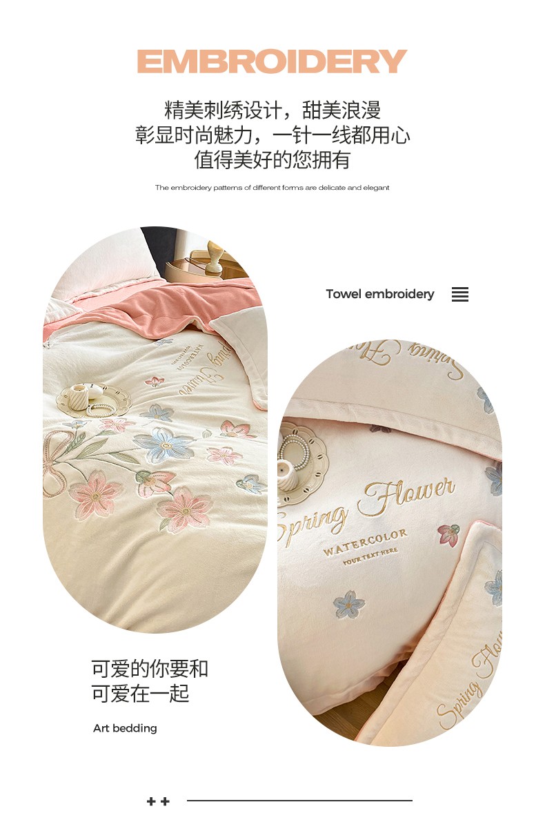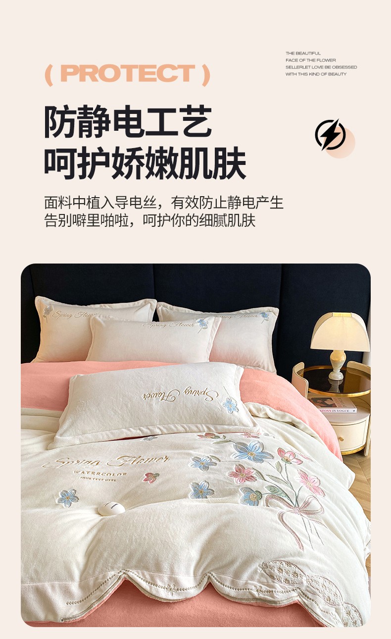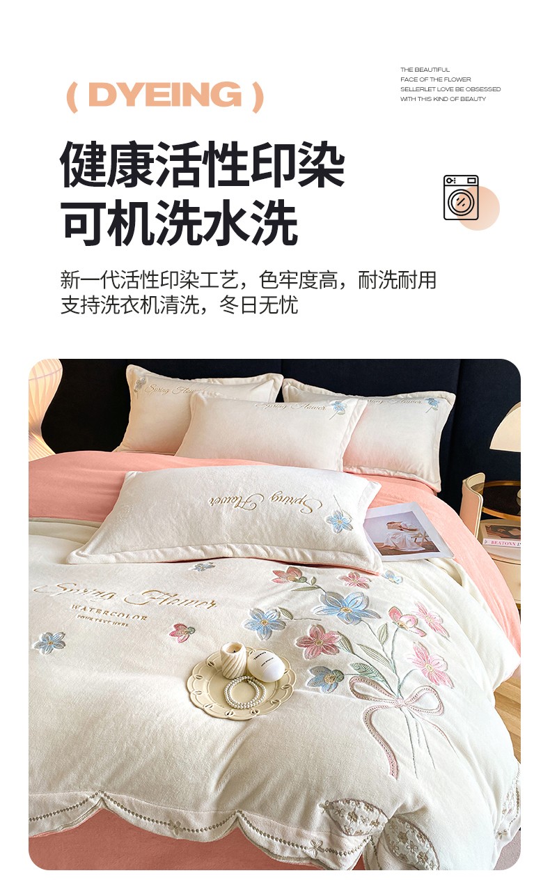 (总)爱家(原缔乐家纺) 2025新款A类高克重牛奶绒立体花刺绣四件套-花蜜,花蜜-公主粉,花蜜-天空兰,花蜜-奶昔白,花蜜-梦幻紫