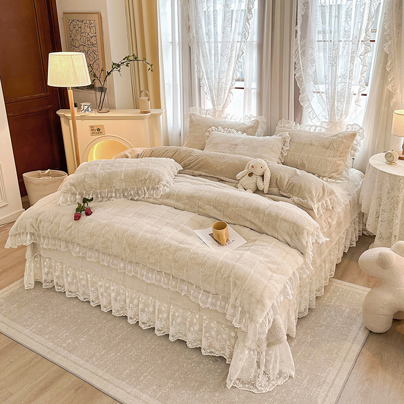 (总)宜凡家纺 2025新款兔绒提花牛奶绒夹棉床裙四件套,爱心 少女粉,爱心 粉紫,爱心 驼色,蝶舞 大红,蝶舞 米色,蝶舞 浅紫,蝶舞 玉色,简爱 苍青,简爱 豆沙紫,简爱 玉色,樱桃 苍青,樱桃 豆沙紫,樱桃 奶油白