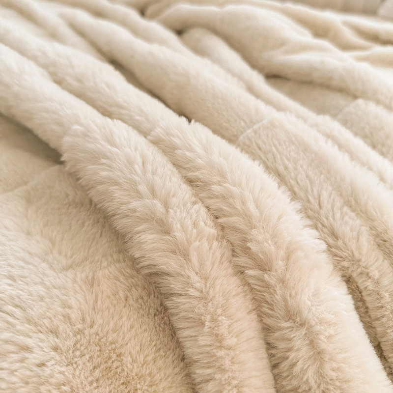 商品名称:宜凡家纺 2023新款宜凡-高克重兔绒牛奶绒床盖三件套 方格纹-驼色