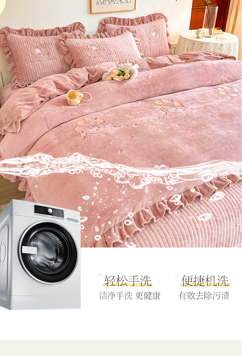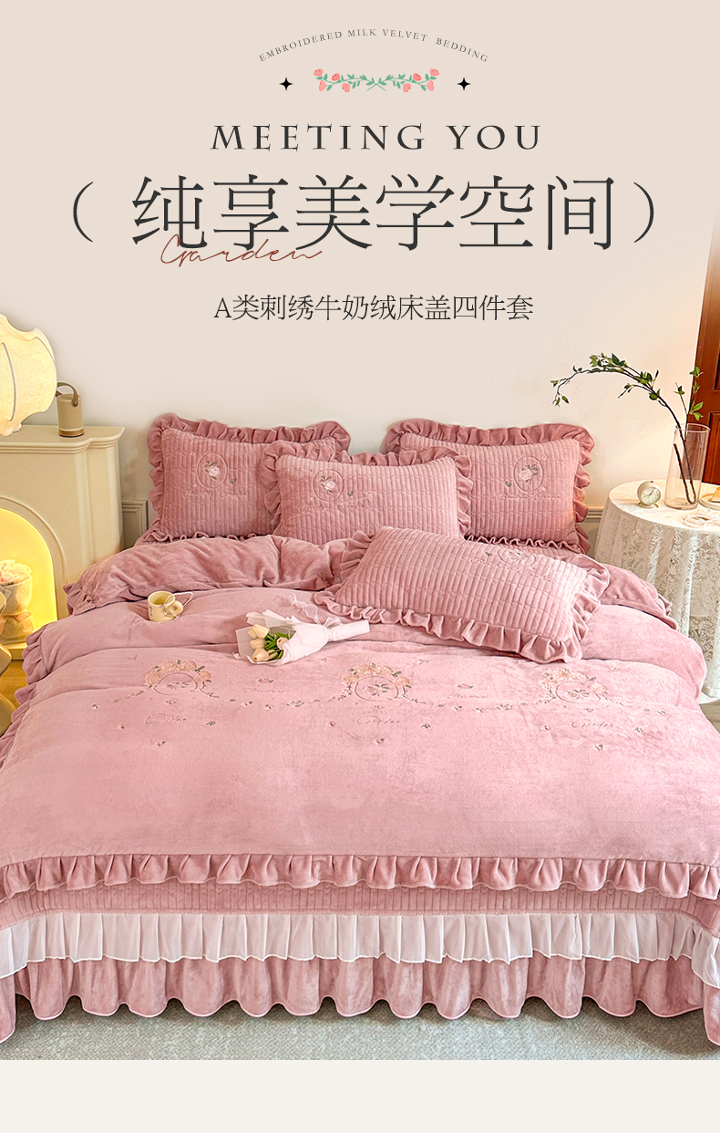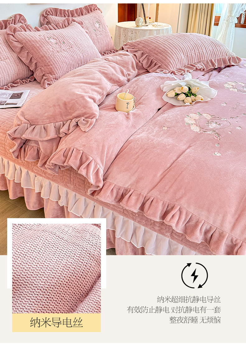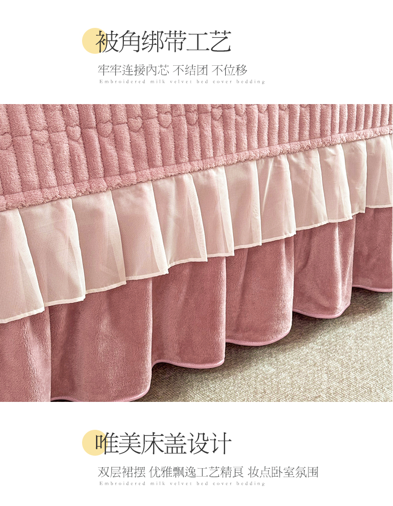 (总)宜凡家纺 2025新款兔绒提花牛奶绒夹棉床裙四件套,爱心 少女粉,爱心 粉紫,爱心 驼色,蝶舞 大红,蝶舞 米色,蝶舞 浅紫,蝶舞 玉色,简爱 苍青,简爱 豆沙紫,简爱 玉色,樱桃 苍青,樱桃 豆沙紫,樱桃 奶油白