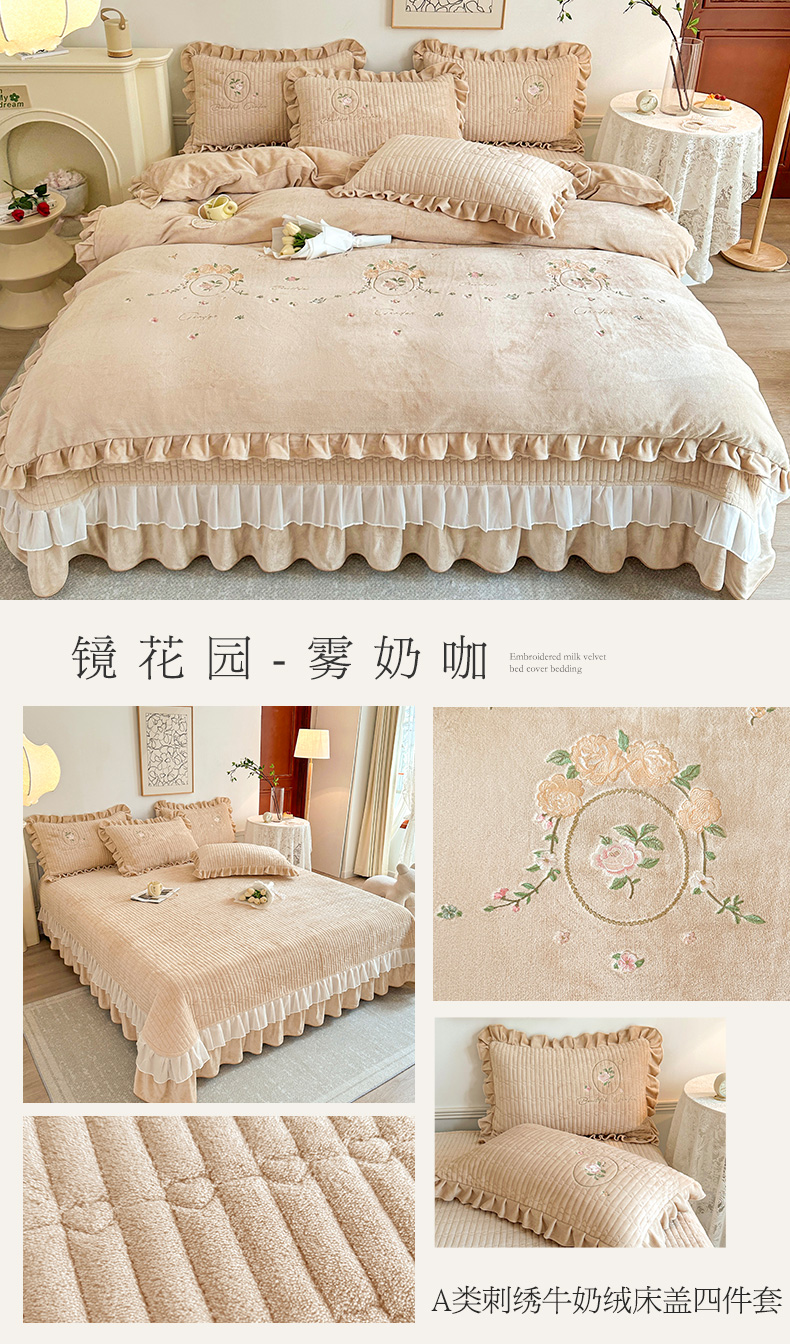 商品名称:(总)宜凡家纺 2023新款高克重牛奶绒绣花夹棉床盖四件套