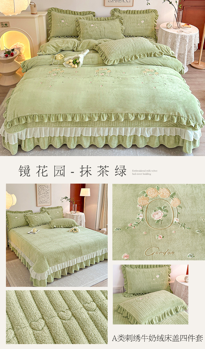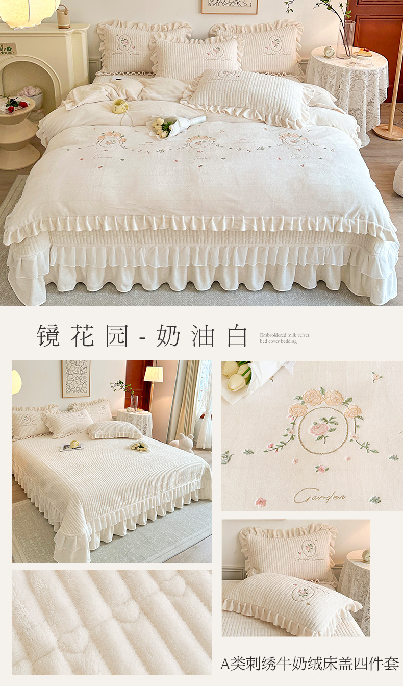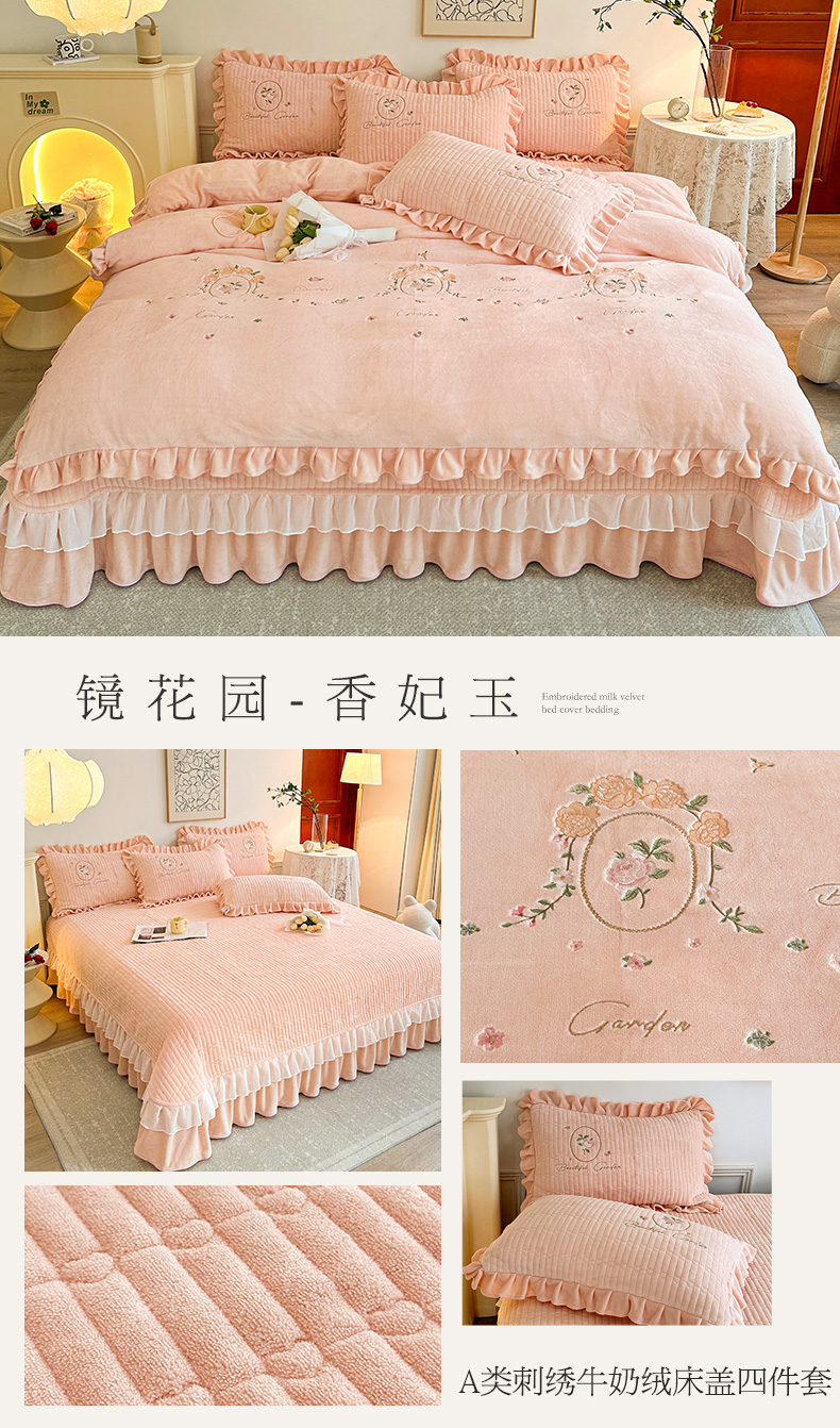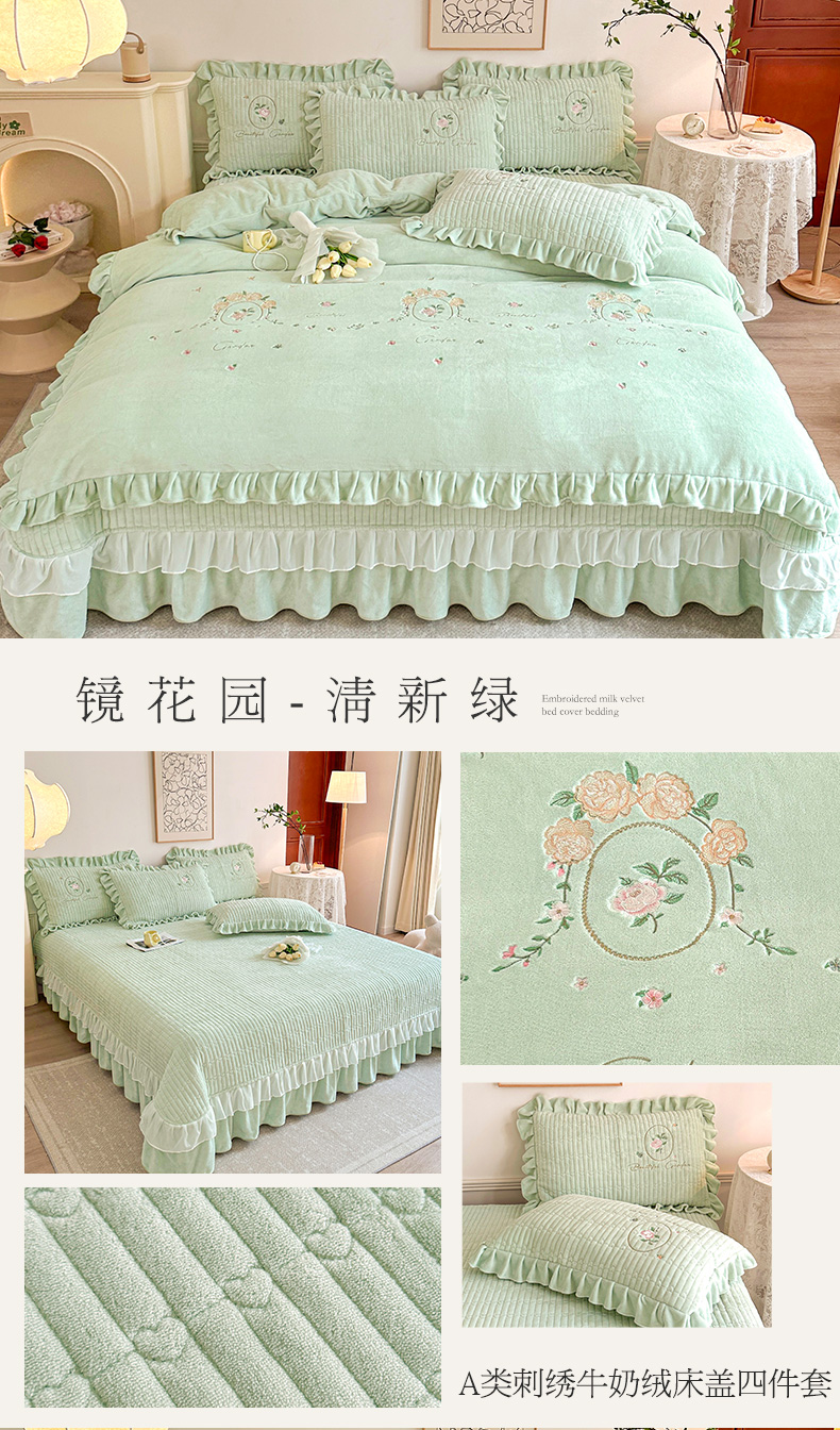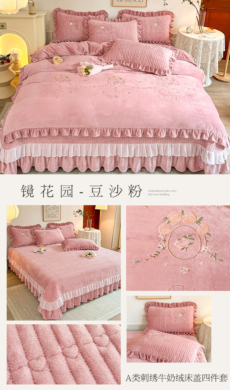 (总)宜凡家纺 2023新款高克重牛奶绒绣花夹棉床盖四件套