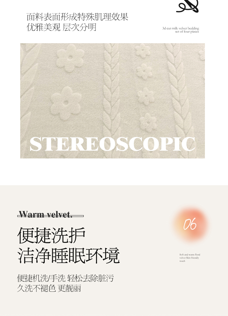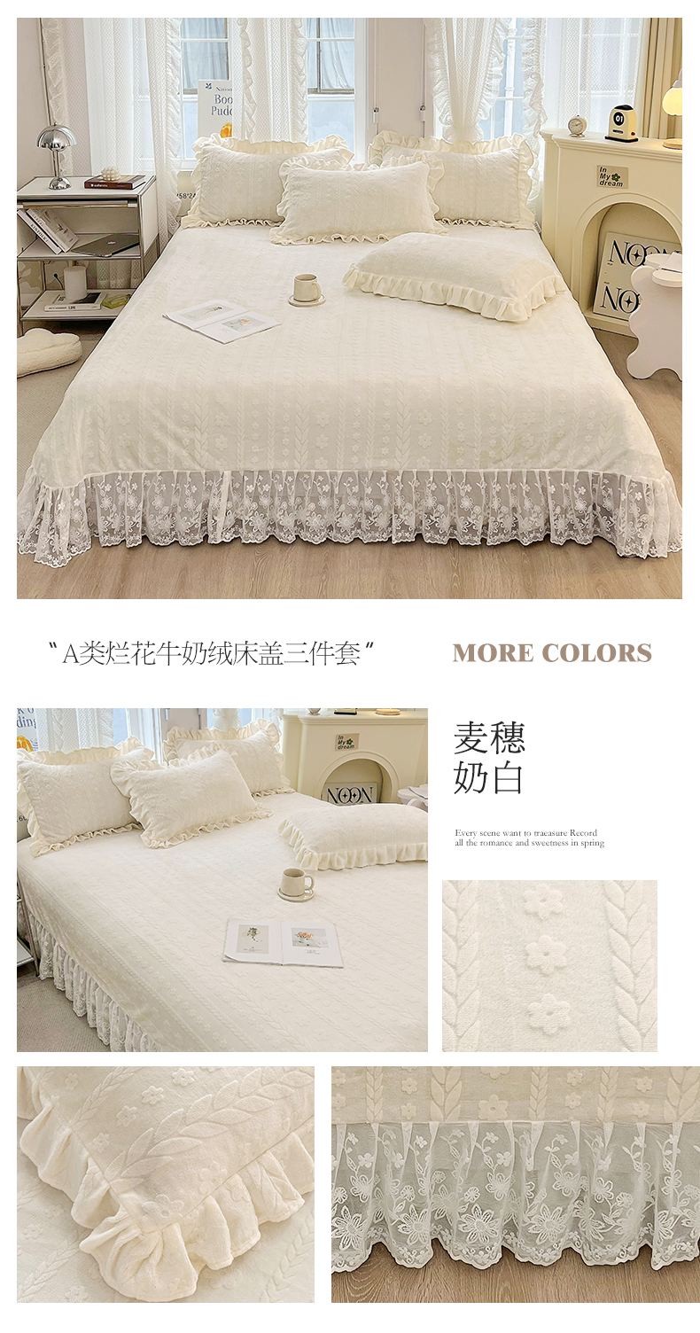 商品名称:宜凡 2023新款烂花牛奶绒床盖三件套 麦穗-奶白