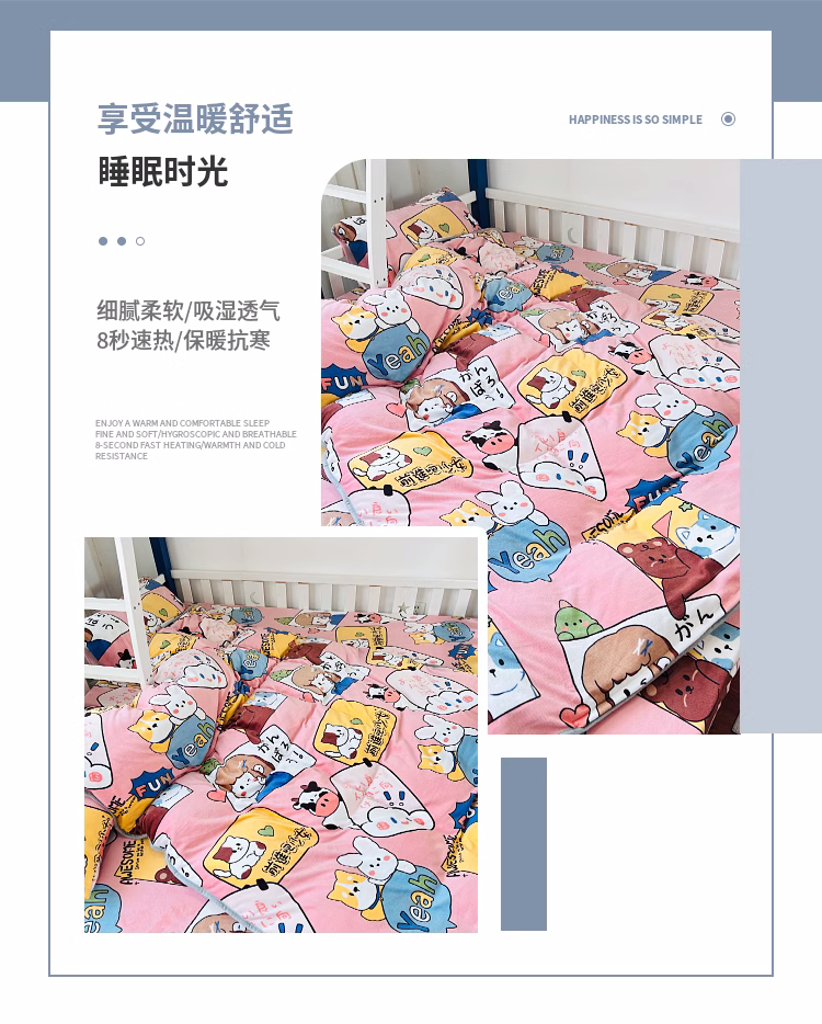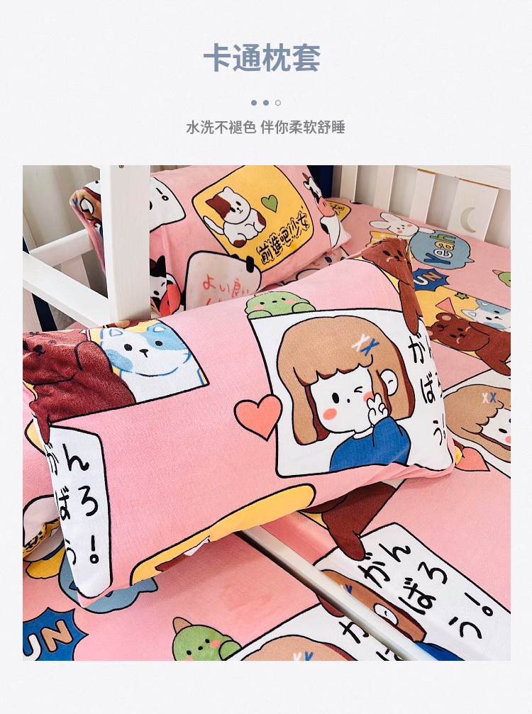 • 91家纺网 家纺一手货源 找家纺 小虾米 2023新款上下床加厚牛奶绒被套 开心女孩