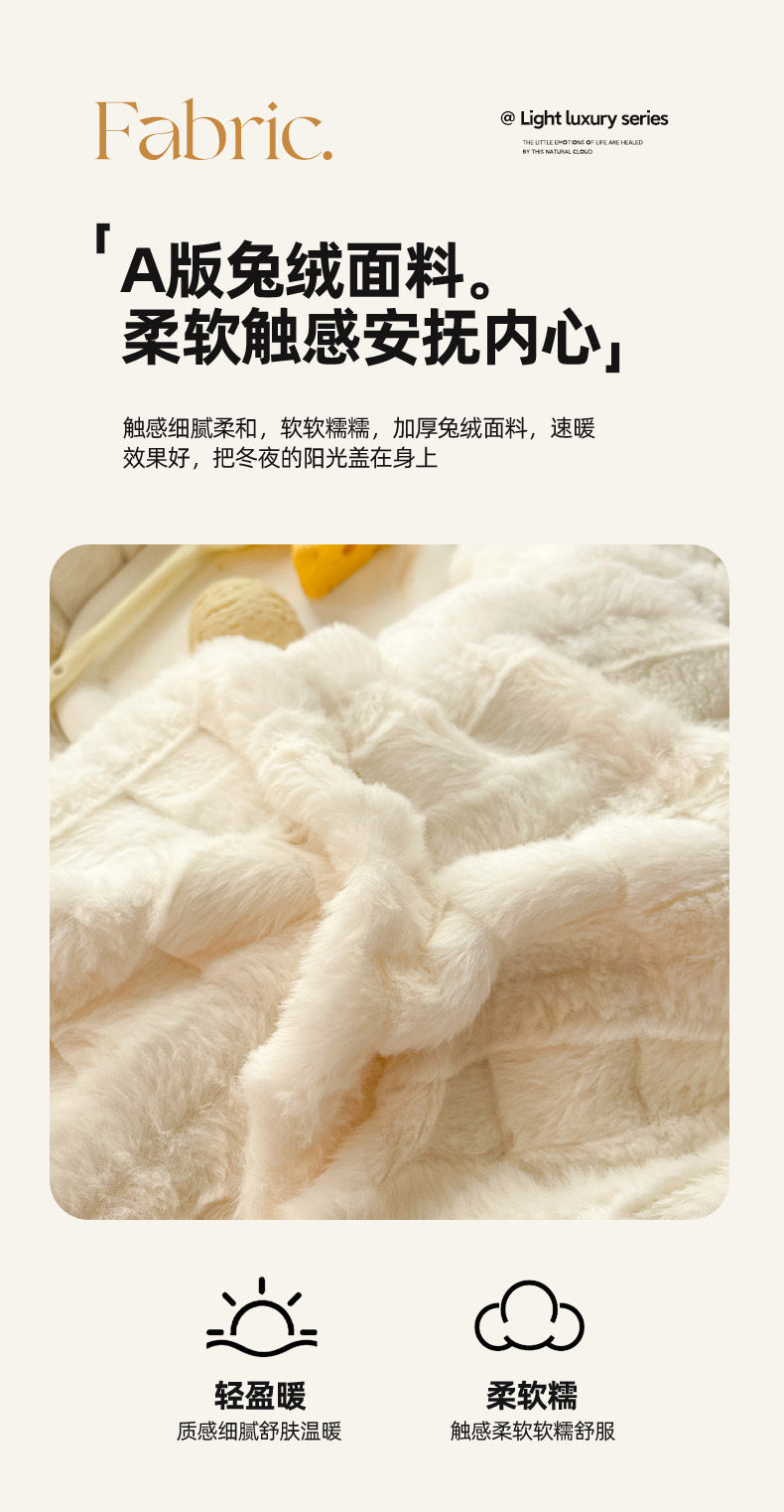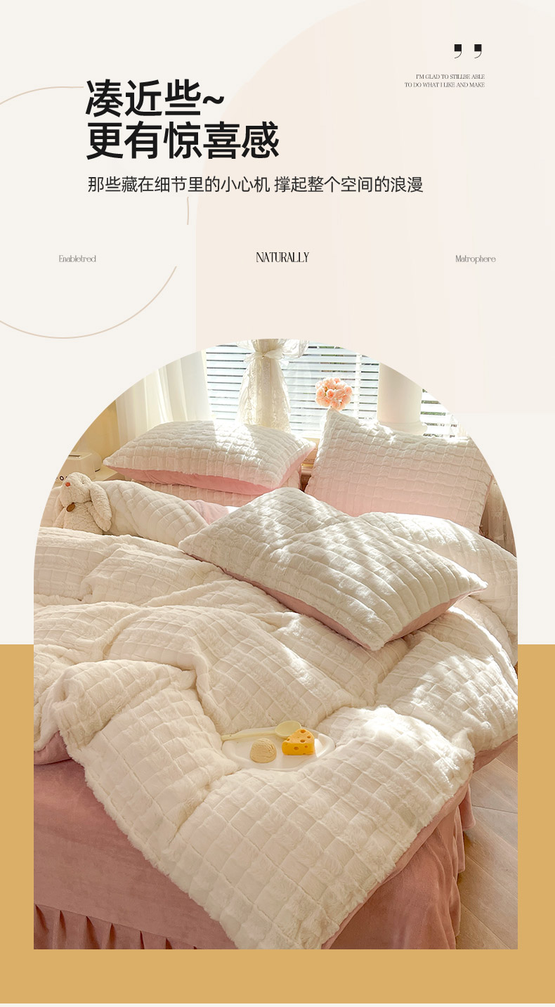 商品名称:丝印良品 2023新款高克重兔绒牛奶绒四件套 月光白粉